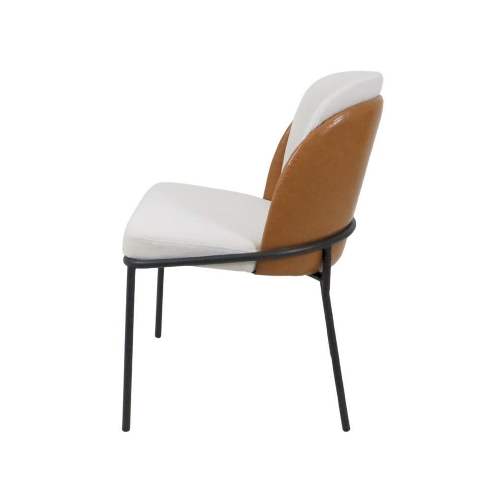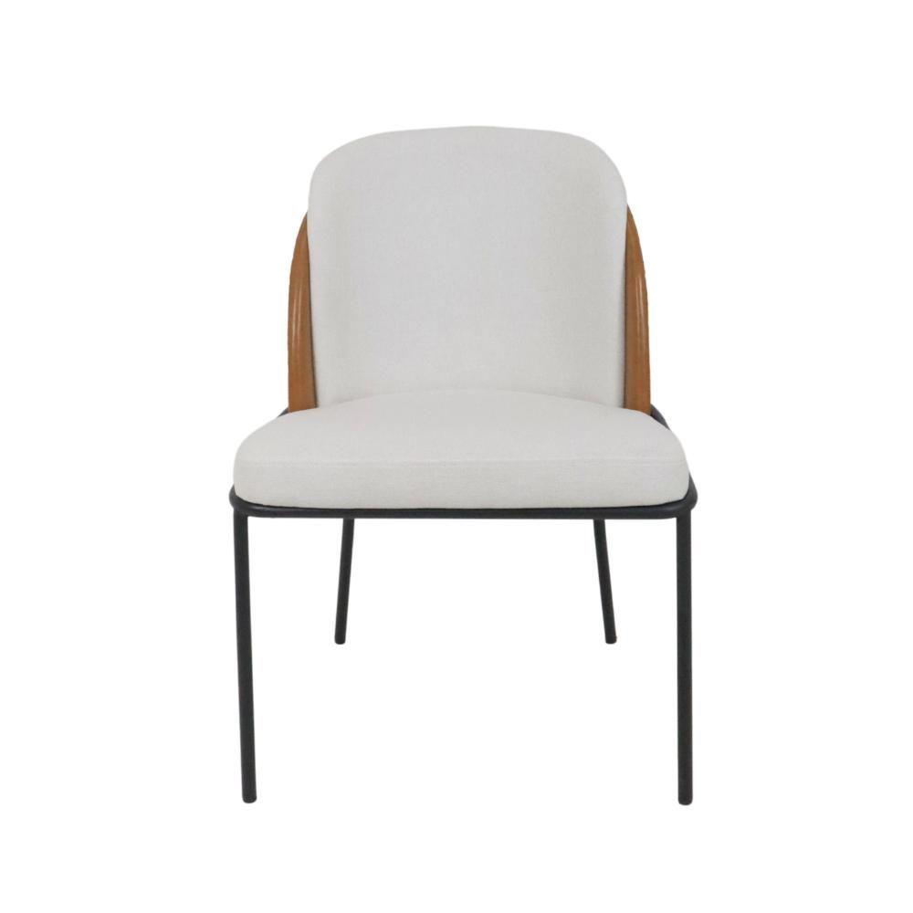 Cadeira De Jantar Nevada Com Encosto Curvo Estofada Em Linho Cru E Couro Sintético Creme