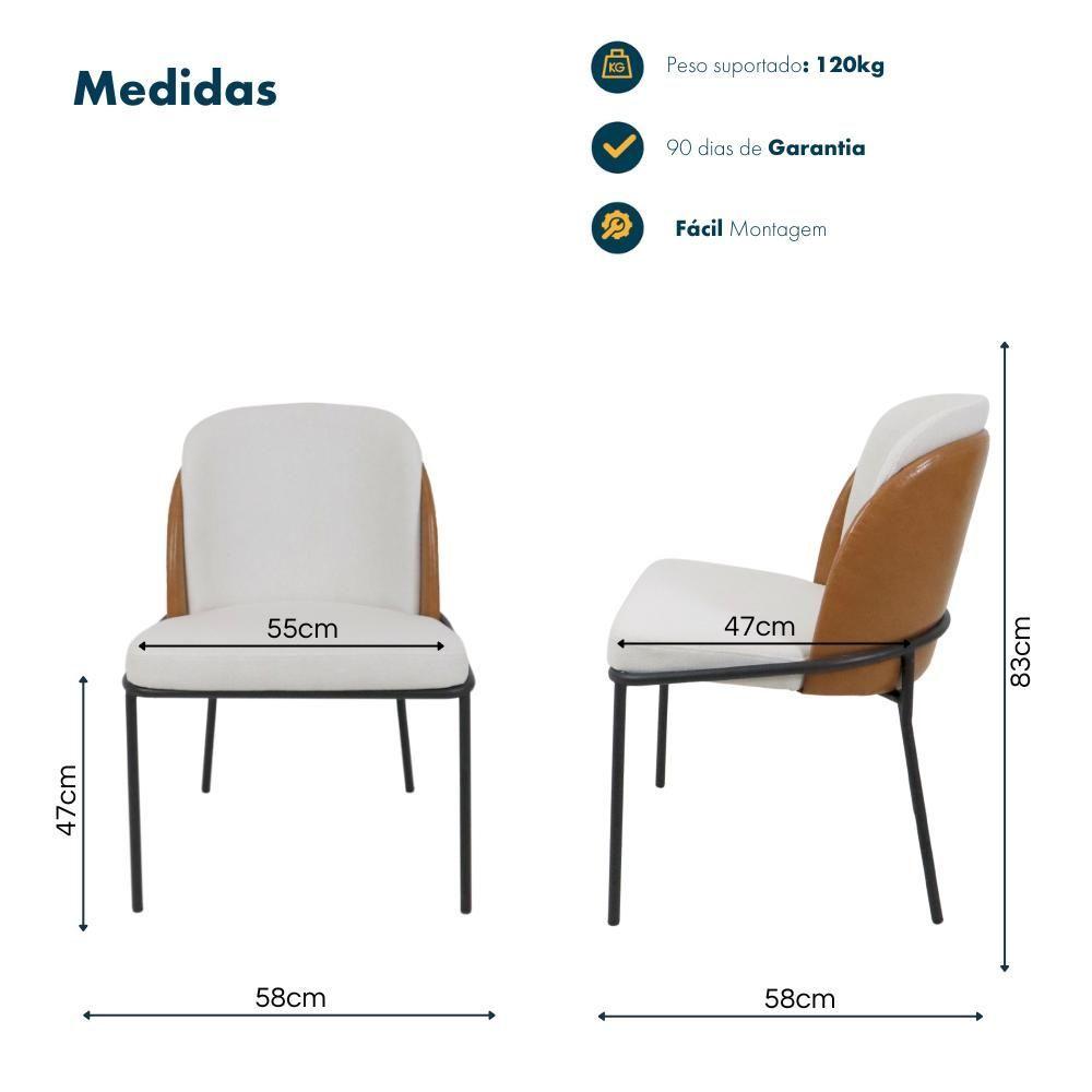 Cadeira De Jantar Nevada Com Encosto Curvo Estofada Em Linho Cru E Couro Sintético CremeBem vindo a Baba Shop!Cadeira de Jantar Nevada com Encosto Curvo Estofada em Linho Cru e Couro SintéticoCom design moderno e sofisticado, a Cadeira de Jantar Nevada se destaca pela combinação harmoniosa entre o couro sintético caramelo e o linho cru, criando uma peça elegante e acolhedora. Seu encosto curvo envolve suavemente o corpo, enquanto a estrutura metálica em preto fosco adiciona um toque contemporâneo e industrial. A estética minimalista e os acabamentos de alto padrão tornam esta cadeira uma escolha perfeita para quem busca estilo sem abrir mão do conforto.Ideal para compor diferentes ambientes, a Cadeira Nevada é perfeita para salas de jantar, cozinhas, espaços gourmet e até mesmo escritórios ou recepções. Sua paleta neutra permite fácil integração com móveis de madeira, vidro ou ferro, valorizando desde decorações modernas e escandinavas até ambientes mais clássicos e aconchegantes.Principais benefícios:- Design contemporâneo com acabamento premium: combina o toque suave do linho cru com a elegância do couro sintético caramelo, criando uma peça versátil que valoriza qualquer ambiente.- Conforto ergonômico para o dia a dia: assento amplo com 55 cm de largura e encosto curvado que proporciona apoio lombar ideal, perfeito para longas refeições ou momentos de convívio.- Estrutura reforçada e estável: pés em metal com pintura eletrostática que garantem durabilidade, resistência à oxidação e sustentação segura para até 120 kg.- Proporções ideais para ambientes residenciais ou corporativos: com altura total de 83 cm e 47 cm do assento ao chão, encaixa perfeitamente em mesas de jantar padrão e também pode ser usada em salas de reunião e recepções.- Montagem simples e rápida: acompanha manual ilustrado com instruções claras, permitindo montagem prática sem necessidade de ferramentas complexas.Especificações técnicas:Altura Total: 83cmAltura Do Chão Até o Assento: 47cmLargura: 58cmLargura Interna: 55cmProfundidade: 58cmProfundidade Interna: 47cmPeso Suportado: 120 Kg Cor: | Material para Filtro: | Peso Produto Com Embalagem (Kg): | Comprimento do Produto (cm): | Largura Produto Com Embalagem (cm): | Descrição do Tamanho: | Comprimento Produto Com Embalagem (cm): | Largura do Produto (cm): | Altura do Produto com Embalagem (cm): | Peso do Produto (Kg): | Altura do Produto (cm): | Marca: Cadeiras Inc | Modelo: Cadeira Estofada de Jantar Luxo Linho Moderna Creme | Altura da Cadeira: 83cm | Requer montagem: Sim | Quantidade de caixas de embalagem: 1 | Largura do assento: 55 | Profundidade: 58 | Quantidade de Cadeiras Por Conjunto: 1 Cor: Creme