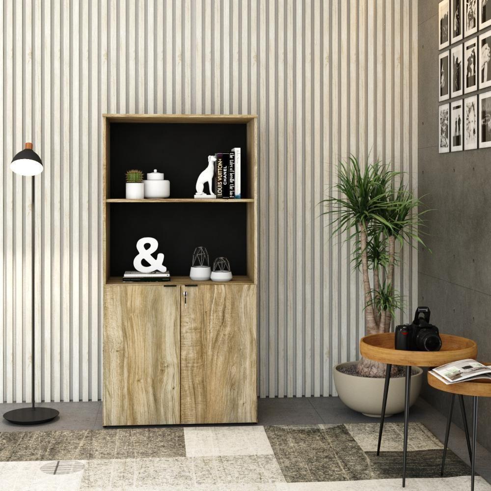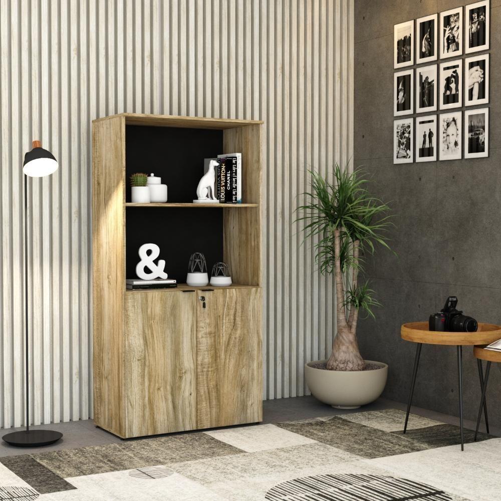 Armário Alto Estante Com 02 Portas 161,5x80x42cm Wlae80 Carvalho - Preto