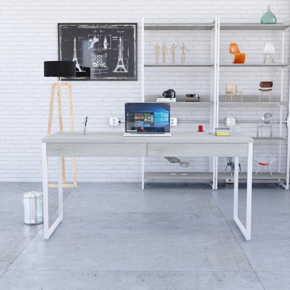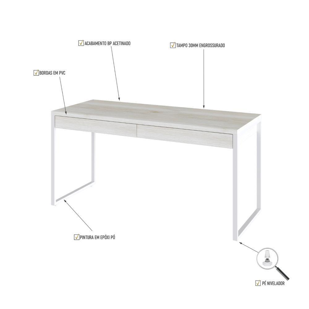 Mesa Diretor 150x60x75cm Com 2 Gavetas Kuadra Snow Estrutura Branca