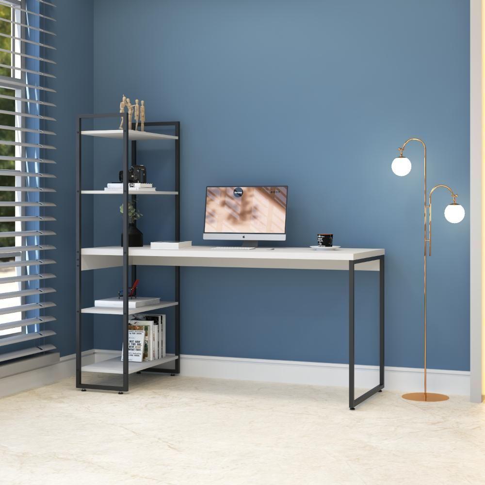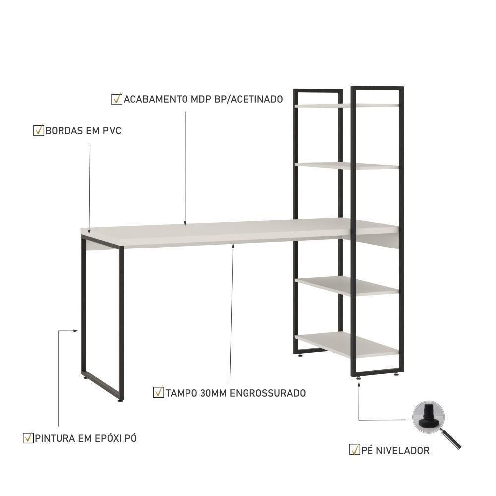 Mesa C/estante Alta 150x64x147cm C/04 Prateleiras Branco Chess / Est.preta