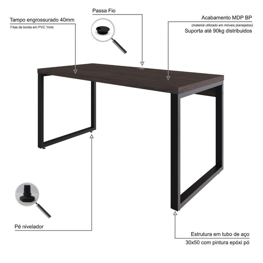 Mesa Diretor 150x70x75cm Yon Terracota-est.preta Terracota-est.preta