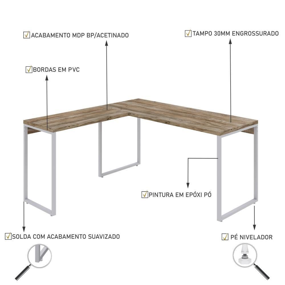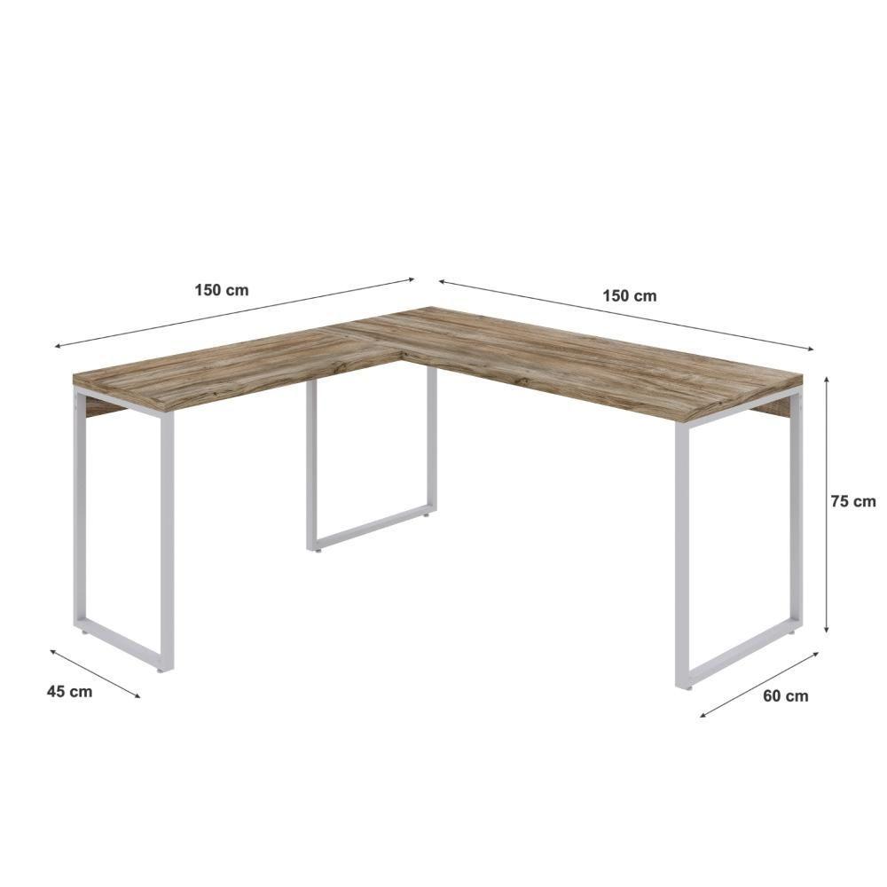 Mesa Em L Kuadra Diretor 150x150x75cm Carvalho - Est.branca Carvalho - Est.branca