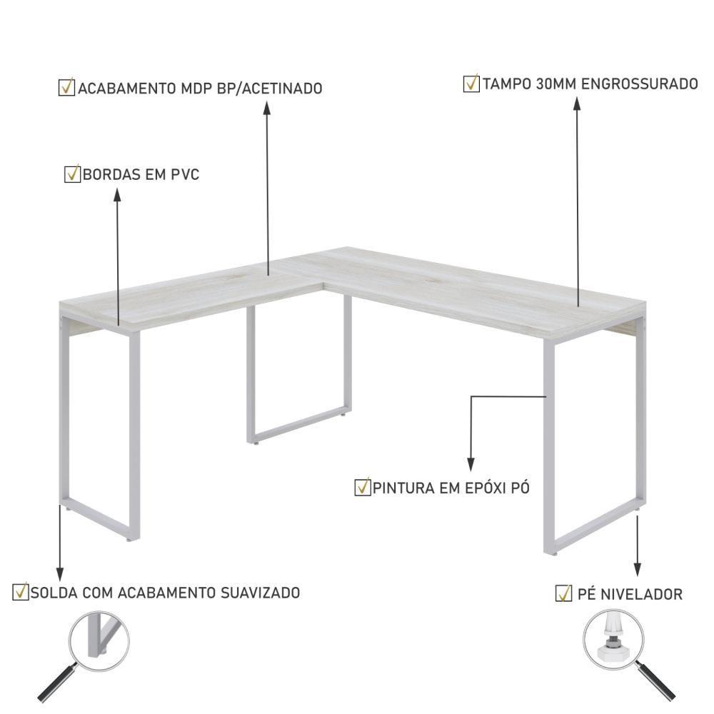 Mesa Em L Kuadra Diretor 150x150x75cm Snow - Est.branca Snow - Est.branca