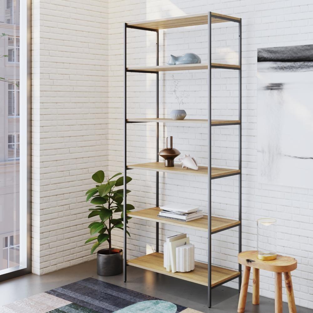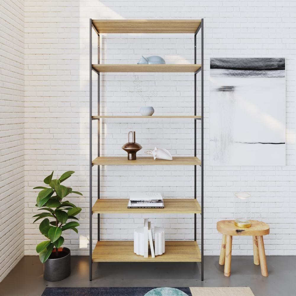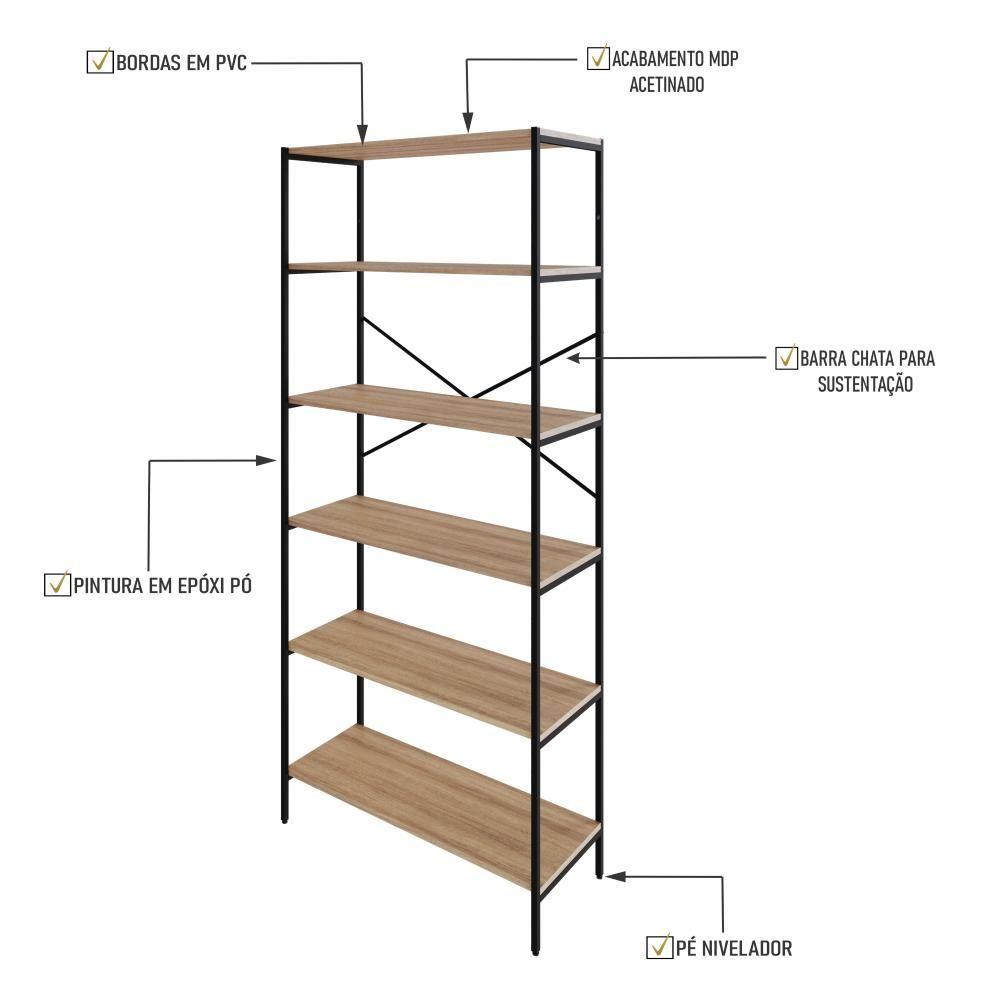 Estante C/06 Prateleiras 186x80x33cm Tub Tueh1886 Lâmina Mel - Est.preta Lâmina Mel / Est.preta