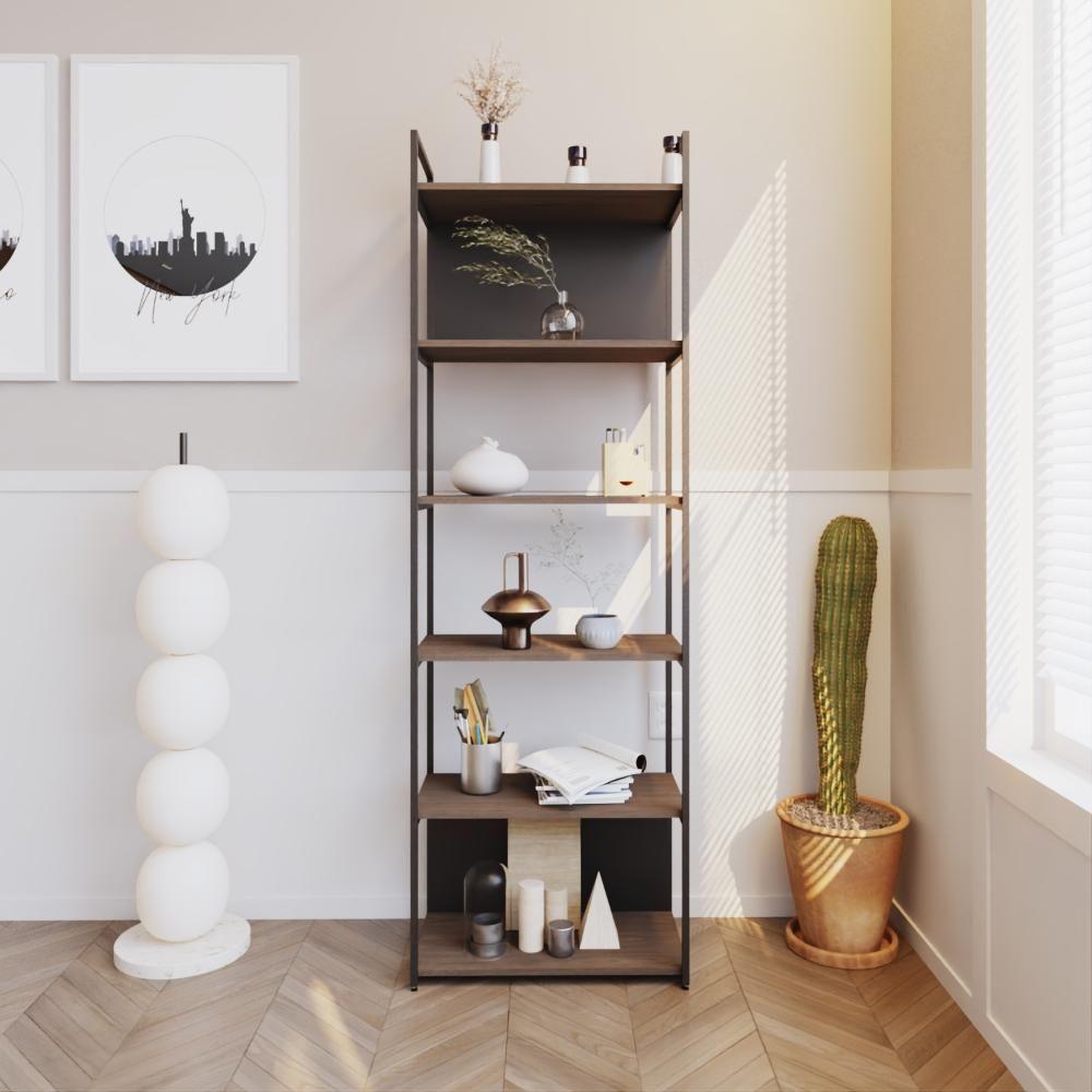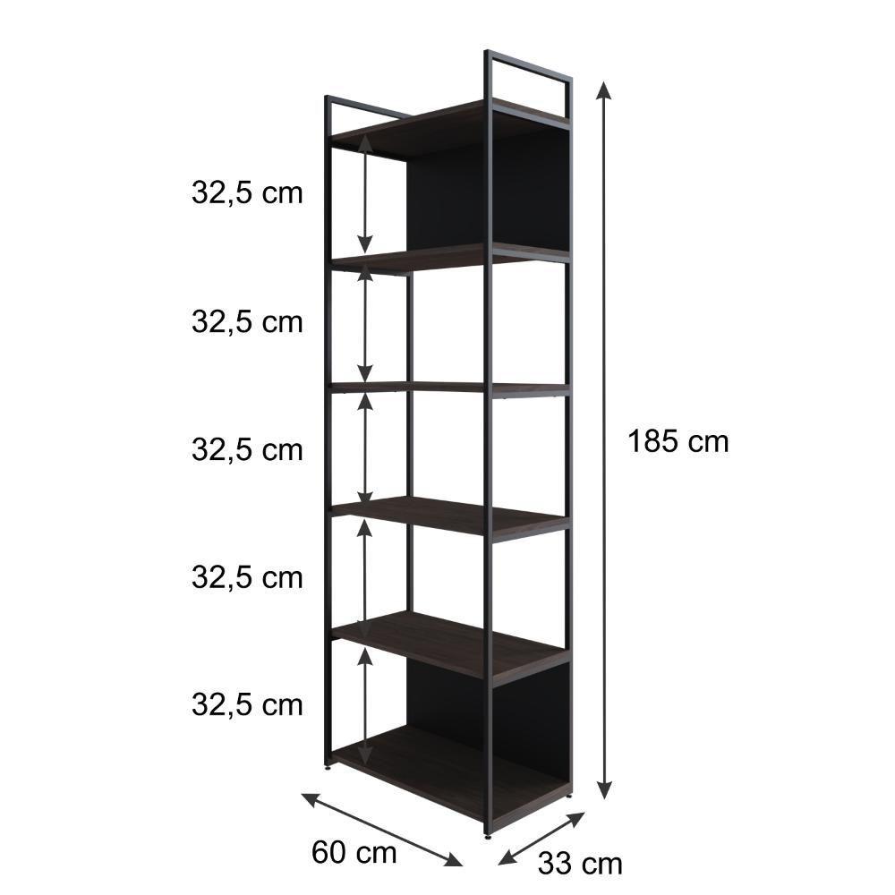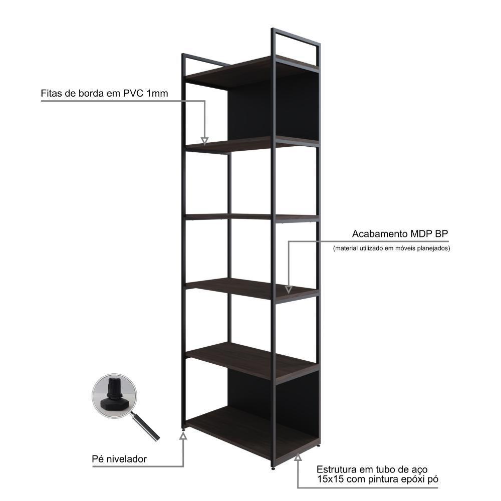 Estante Alta C/06 Prateleiras 185x60x33cm C/fundo Yon Terracota/est.preta Terracota/est.preta
