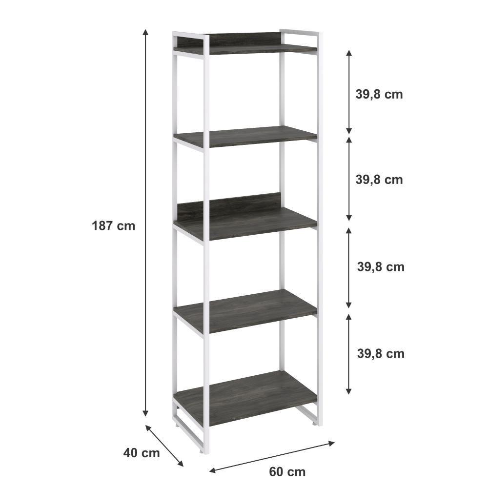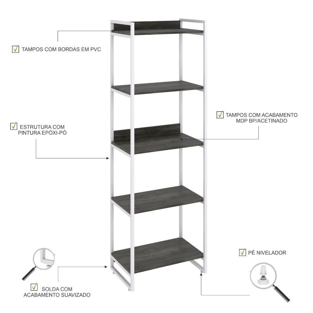 Estante Kuadra 60x40x187cm C/05 Prateleiras Carvalho Dark / Est.branca Carvalho Dark / Est.branca