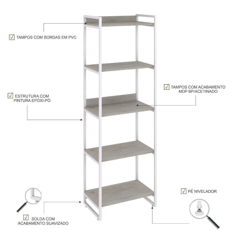 Estante Kuadra 60x40x187cm C/05 Prateleiras Snow / Est.branca Snow / Est.branca