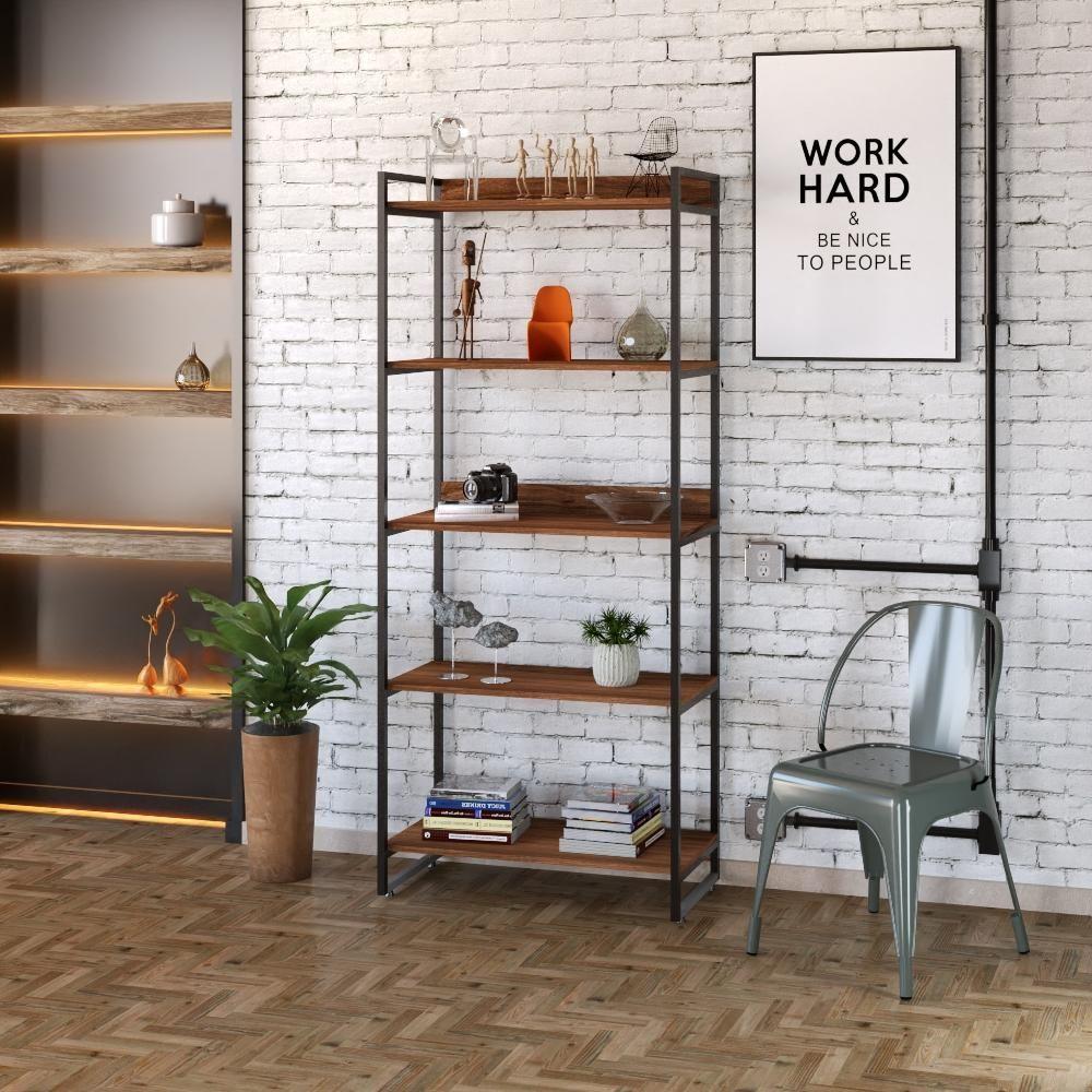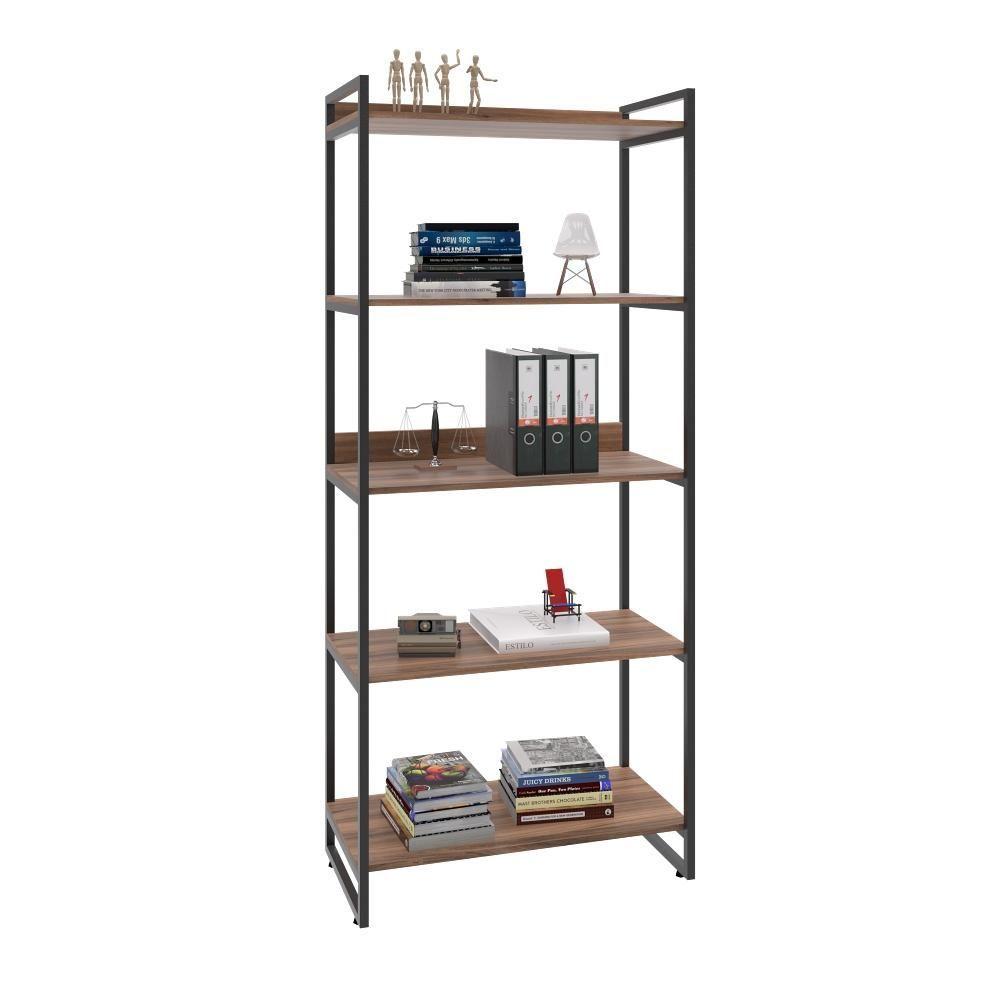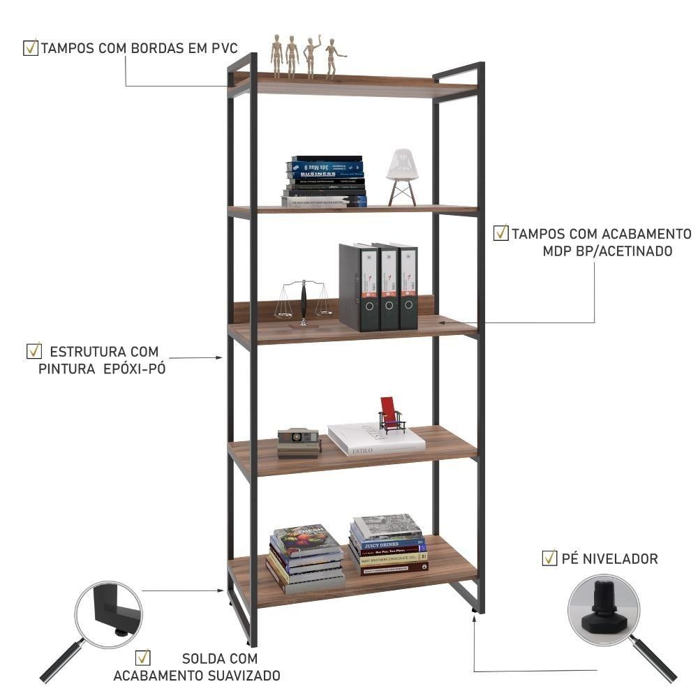 Estante Kuadra 80x40x187cm C/05 Prateleiras Nogal / Est.preta Nogal / Est.preta