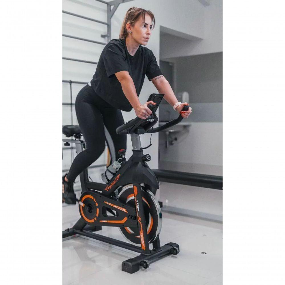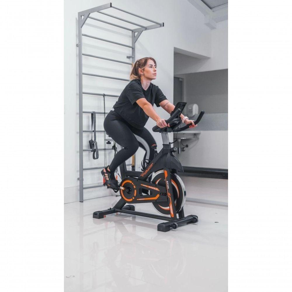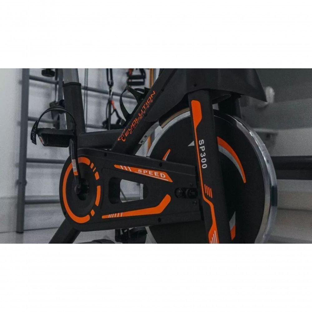 Bicicleta Spinning Evolution Fitness Sp 300A Evolution Fitness apresenta a bicicleta spinning de uso residencial SP 300.Com um design moderno, ergonômico e compacto para ficar muito bem em qualquer ambiente de seu lar, a SP 300 é ideal para fazer a queima de calorias e tonificar os membros inferiores sem sair do conforto de sua casa.Esta Spinning residencial conta com um sistema de tração através de correias, o que torna o equipamento muito mais silencioso.Com um disco de inércia de 10Kg, a SP 300 torna o treino mais intenso para usuários iniciantes e intermediários.Seu painel constam as seguintes informações: tempo, velocidade, distância, calorias, e um exclusivo sistema de monitoramento cardíaco através do hand pulse.Possui regulagem dos pés para melhor adequação em determinados pisos.A SP 300 atende com excelência e muito conforto usuários de até 1,85m, com peso máximo de 120Kg.