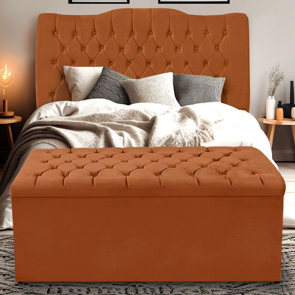 Kit Cabeceira E Calçadeira Baú Dunas Casal 140 Cm - Veludo Terra Cota