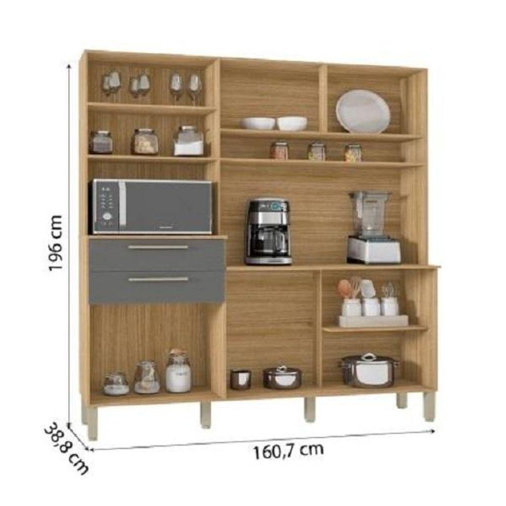 Armário De Cozinha Completa Montesa 6 Portas 2 Gavetas Freijó / Grafite Freijo CinzaA Cozinha Montesa foi pensada nos mínimos detalhes para atender às necessidades do dia a dia, mantendo a elegância da sua cozinha ou área gourmet.Conta com 2 gavetas e nichos com espaço para forno ou micro-ondas, além de compartimentos internos que facilitam a organização e praticidade.Produzida com material de qualidade, garantindo a durabilidade do produto.Especificações TécnicasMarca: Kits ParanáModelo: Armário de Cozinha Completa Montesa 6 Portas 2 GavetasCor: Frejó / Branco (também mencionado como Frejó / Grafite e Frejó Cinza)Altura: 196 cmLargura: 160,7 cmProfundidade: 38,8 cmPeso: 64 kgPeso suportado: 73 kgMaterial: MDP 12mmPintura: UVAcabamento: UVTipo de produto: Armário de CozinhaMaterial da porta: MadeiraPortas: 6 portasTipo de portas: BaterGavetas: 2 gavetas (suportam até 4 kg cada)Prateleiras: 3 (suportam de 5 kg a 7 kg)Nichos: SimPuxadores: PlásticoDobradiças: MetálicasCorrediças: MetálicasPés: 6 unidadesMaterial dos pés: PlásticoPossui tampo: SimMaterial do tampo: MDP 15mmGarantia: 3 meses pelo fabricanteRecomendações de Limpeza- A limpeza deve ser feita com pano macio e moderadamente umedecido com água pura ou solução com sabão neutro.- Evite mover o produto com utensílios dentro dele.- Atente-se às especificações do esquema de montagem quanto ao peso suportado. Montagem e - Sistema de montagem: Pregos, parafusos e cavilhas- Montagem não inclusa- Entregamos até a porta de entrada da casa ou portaria do condomínio (caso permitido).- Não realizamos: Montagem ou desmontagem de produto