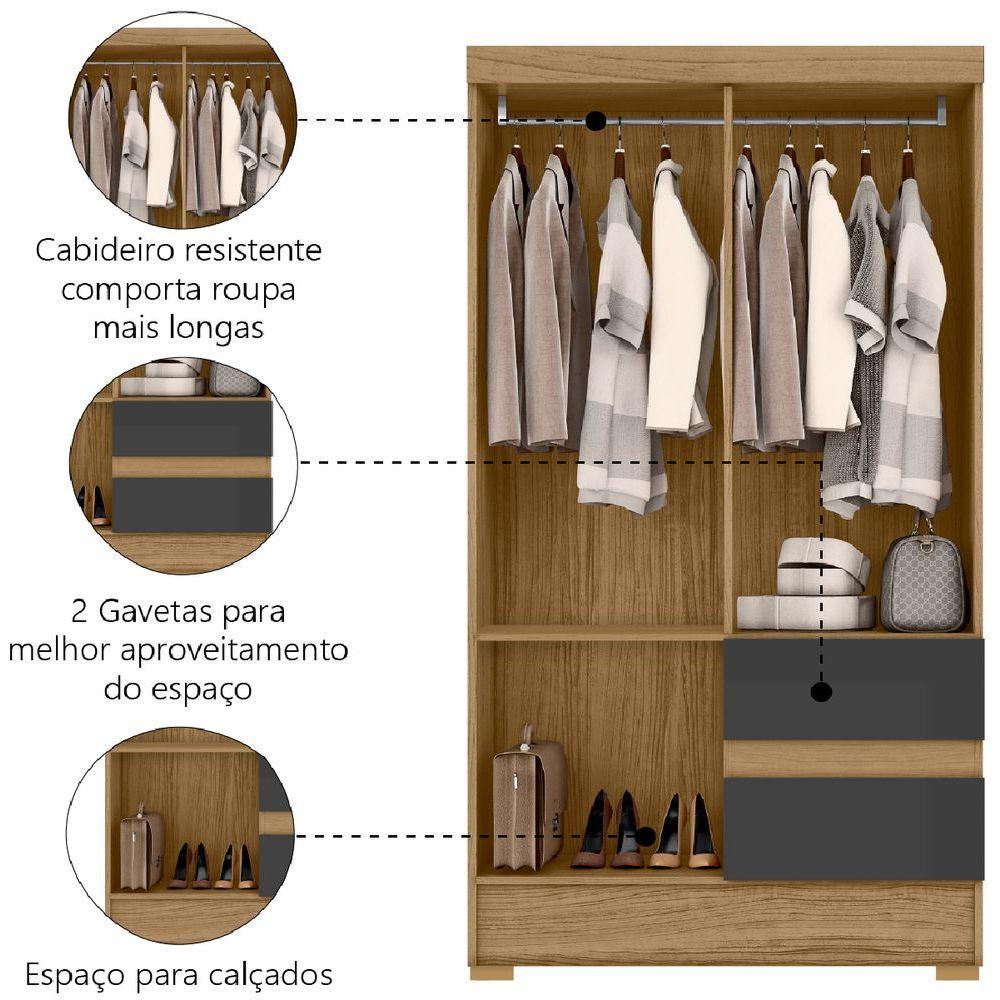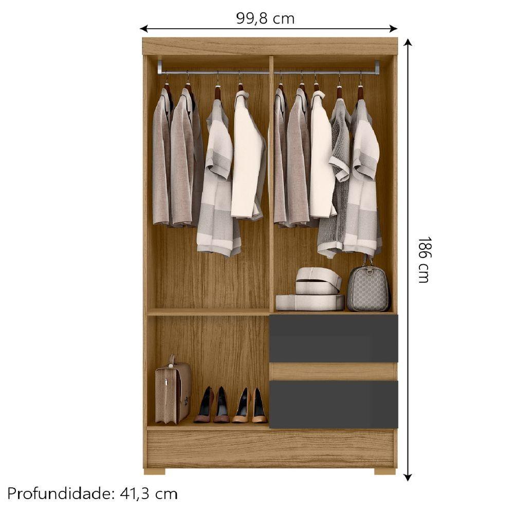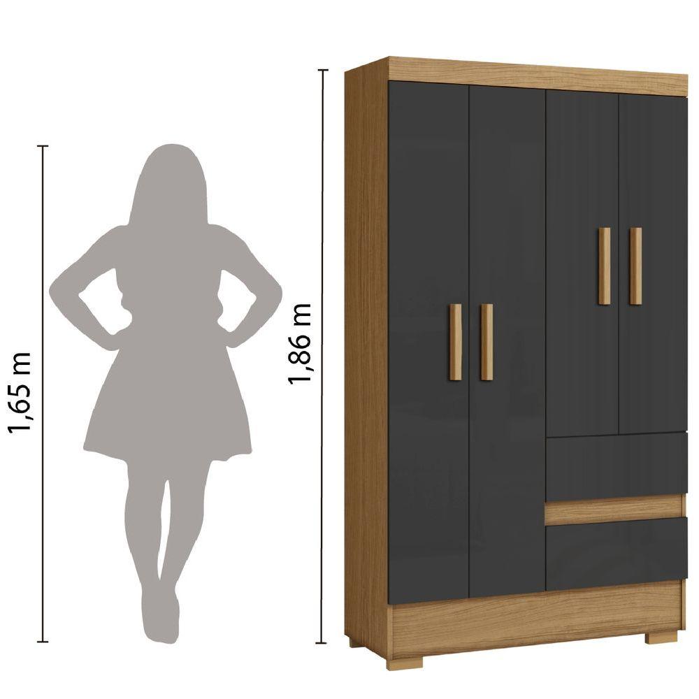 Guarda Roupas Solteiro 4 Portas 2 Gavetas Atacama / Grafite Coimbra Aramóveis Atac Graf