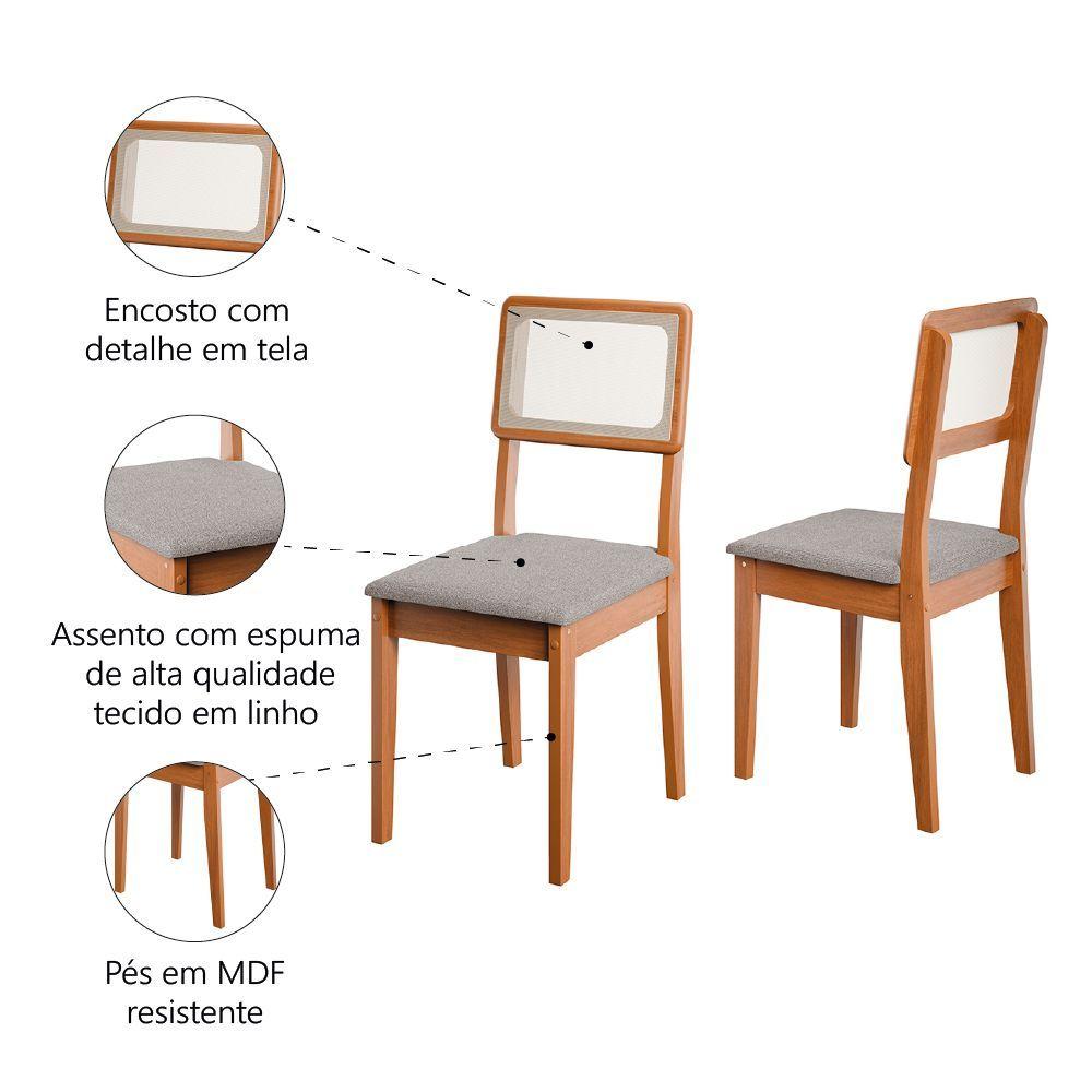 Conjunto 2 Cadeiras Encosto Em Tela Sala De Jantar Santiago Dobuê Madeirado/off White