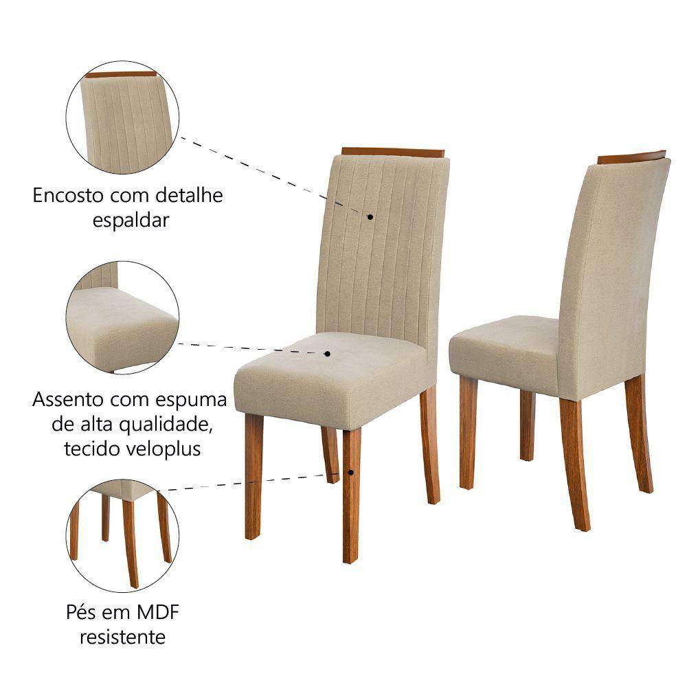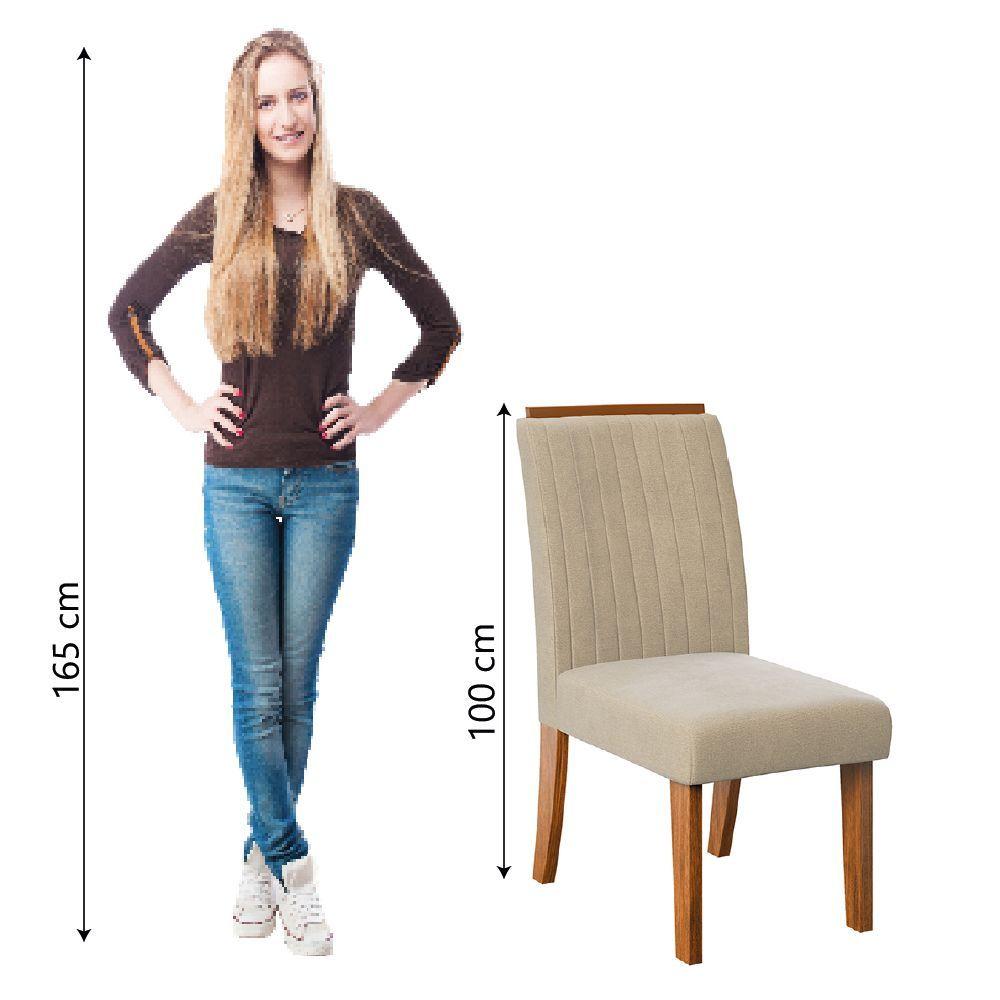 Conjunto De 2 Cadeiras Estofada Sala De Jantar Grécia Dobuê Madeirado / Bege
