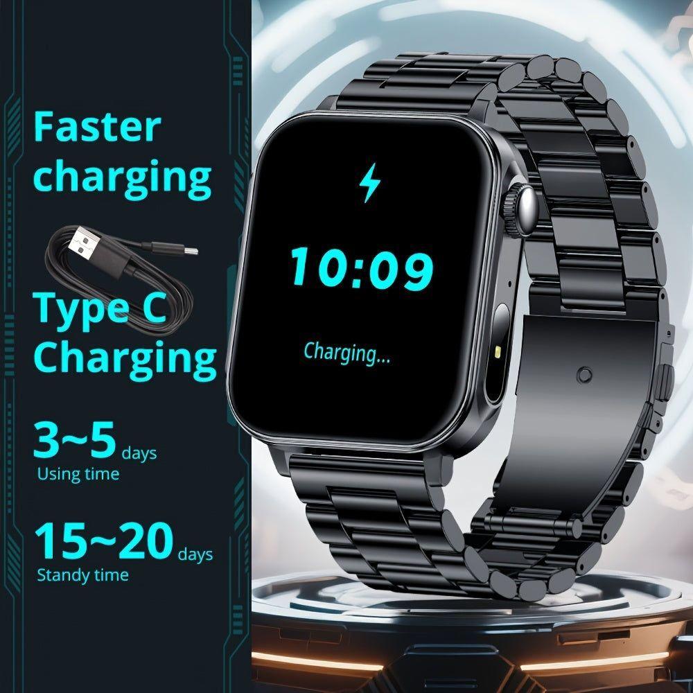 Relógio Smartwatch Com Carregamento Tipo C, Função Led, Botão Rotativo Preto