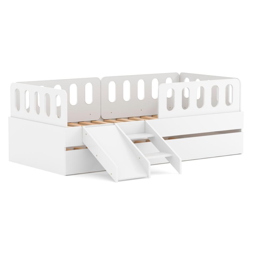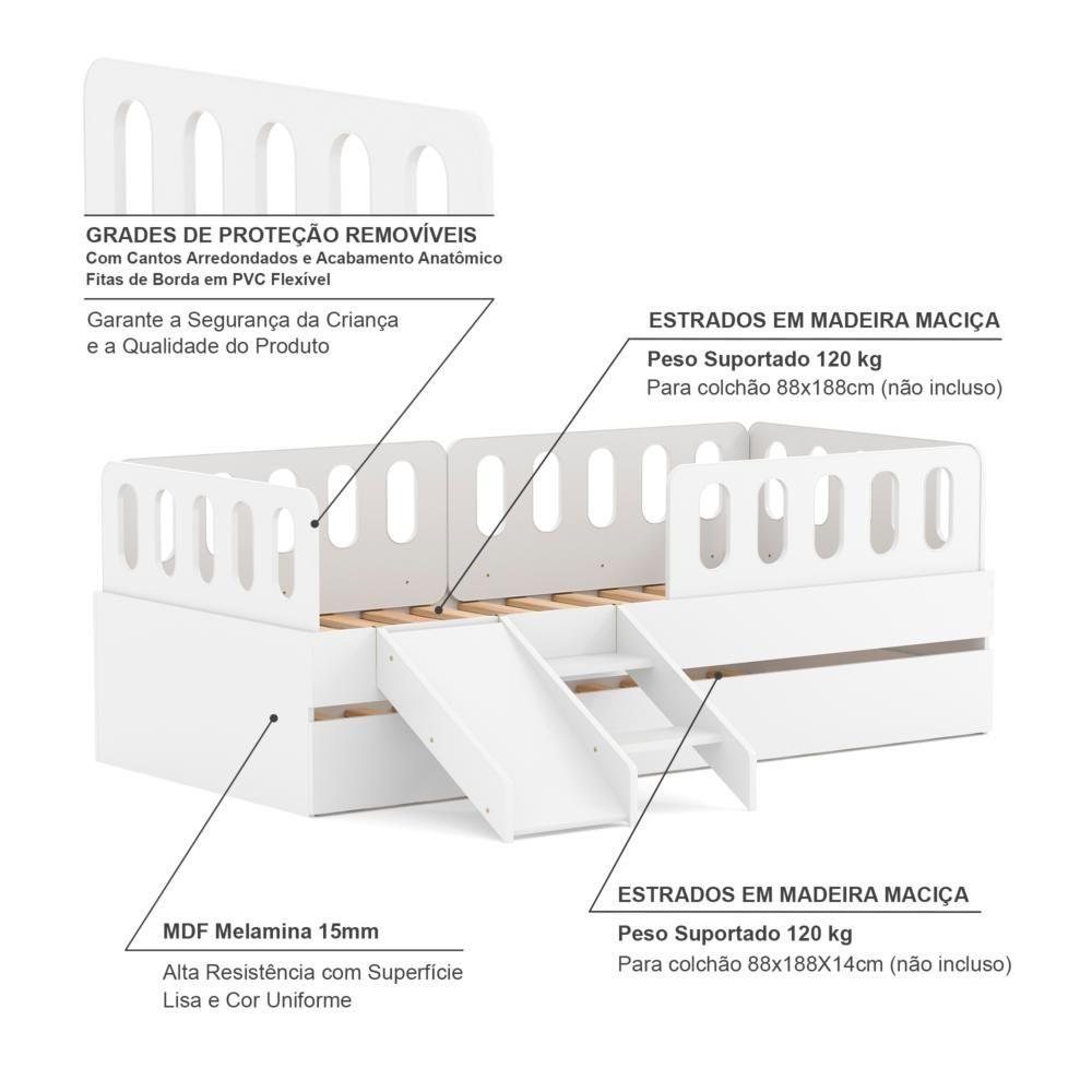 Bicama Solteiro Mdf Branco Com Escadinha/escorrega 03 Grades E Cabeceira Anatômica Mobilistore
