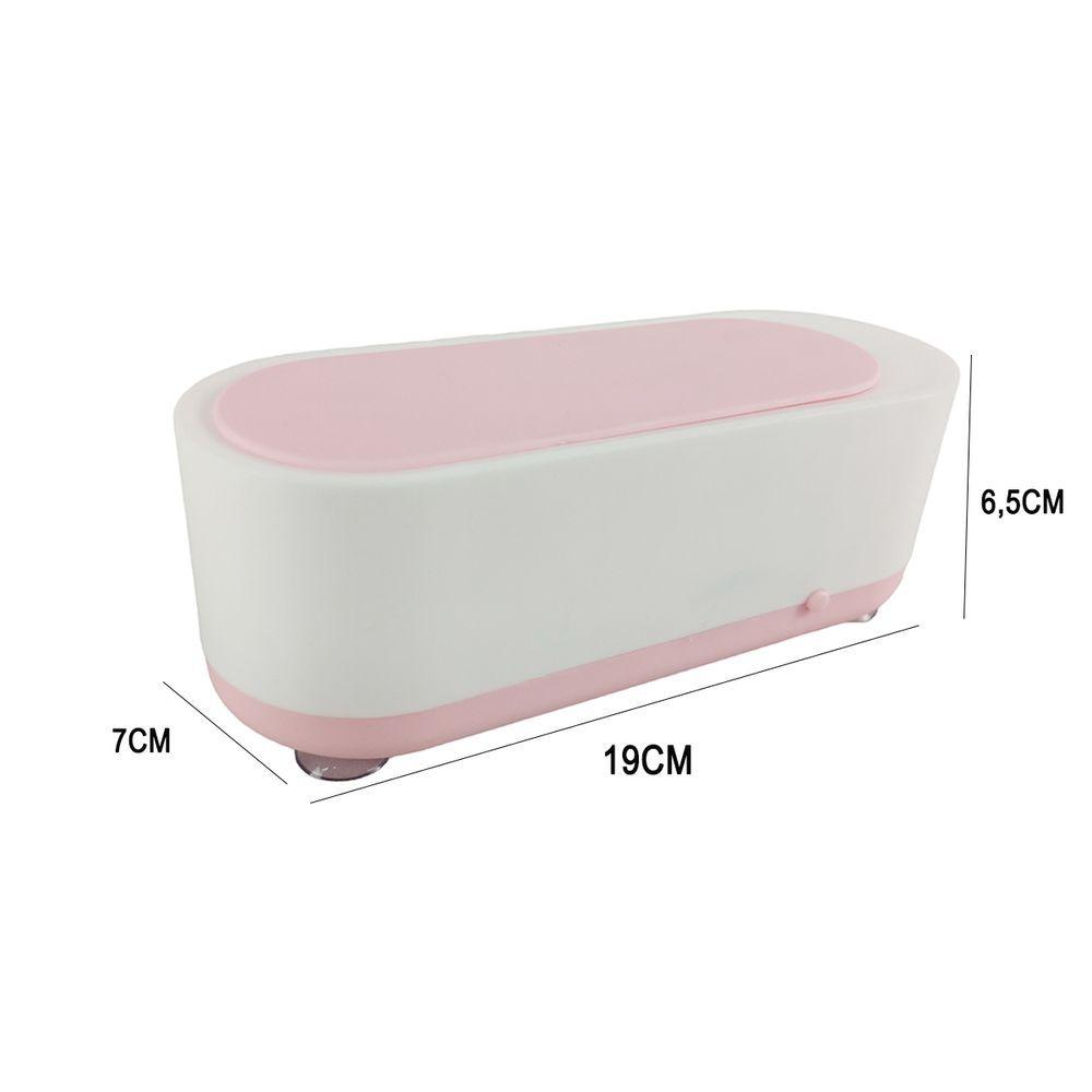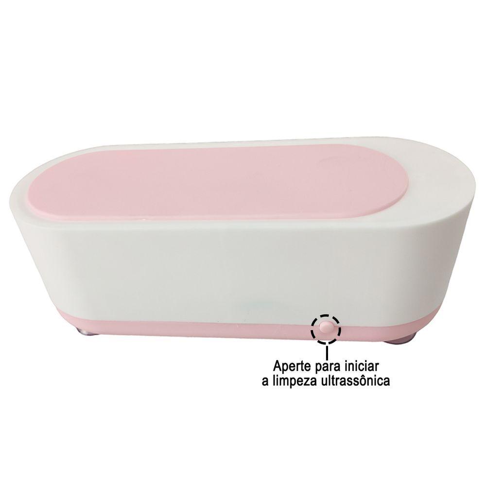 Limpador Ultrassonico Oculos Joia Anel Pincel De Maquiagem Acessorios Multiuso Alta Frequencia Portatil EstojoO limpador ultrassonico é perfeito para deixar seus oculos mais limpos sem causar nenhum dano ao produto.O limpador ultrassonico se expande sob a açao da pressao sonora e obtem uma força de impacto instantanea. Finalmente, a sujeira pode ser efetivamente removida com facilidade.E o melhor, o limpador é pequeno e portatil, facil de armazenar, podendo colocar dentro da bolsa, mochila e levar para onde desejar.O limpador utiliza 2 pilhas AAA (não inclusas) e basta ligar o botao iniciar.Recomendamos a limpeza de joias ou oculos por até 5 minutos para obter os melhores resultados de limpeza.Pode utilizar para limpeza de talheres, laminas, pulseiras de relogio, o que você imaginarAdicione 2 gotas de fluido de limpeza de sua preferencia ou detergente neutro na água para obter melhores resultados.Limpeza profunda e abrangente: poderosas ondas ultrassonicas multidimensionais penetram profundamente nas lacunas, com impacto de alta frequencia de 360 graus em todas as direçoes, limpando locais dificeis.O limpador possui 4 ventosas na parte inferior, ajudando na estabilidade durante o processo de limpeza. Caracteristicas:Limpador UltrassonicoOculosJoiasPincel de MaquiagemMultiusoCapacidade até 200ml de aguaLimpeza de oculos, joias, talheres, laminas...2 Duas Pilhas AAA (não inclusas)Cor: Branco e RosaMaterial: PolipropilenoDimensoes Aproximadas:Largura: 7cmComprimento: 19cmAltura: 6,5cmProfundidade: 3cmConteudo da embalagem:1 Limpador Ultrossonico3 Meses de Garantia Contra Defeito de Fabricaçao**177 MOD: BSL3492