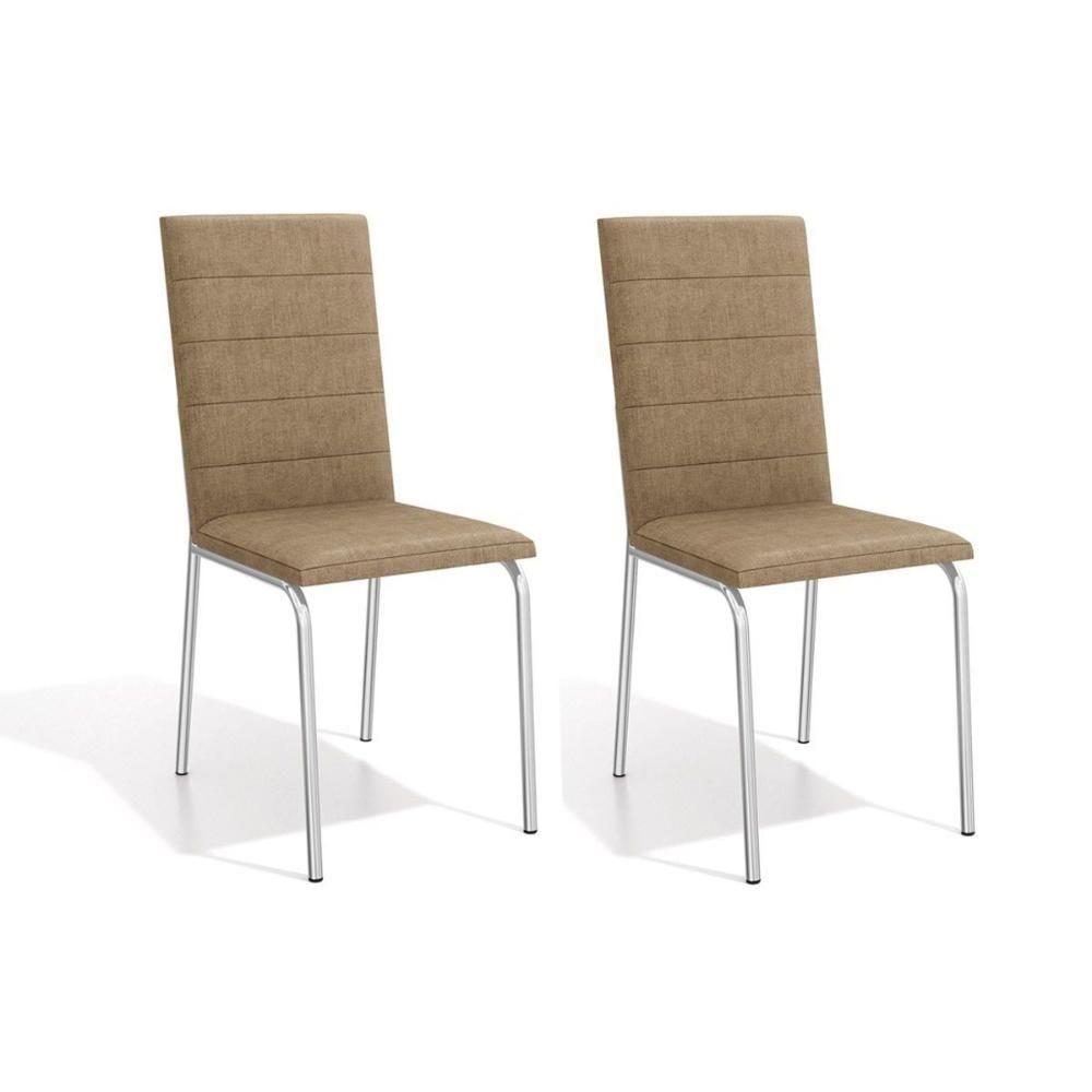 Cadeira Sala De Jantar Amsterdã 2c091 Kit 2 Un Cromado/linho Capuccino - Kappesberg