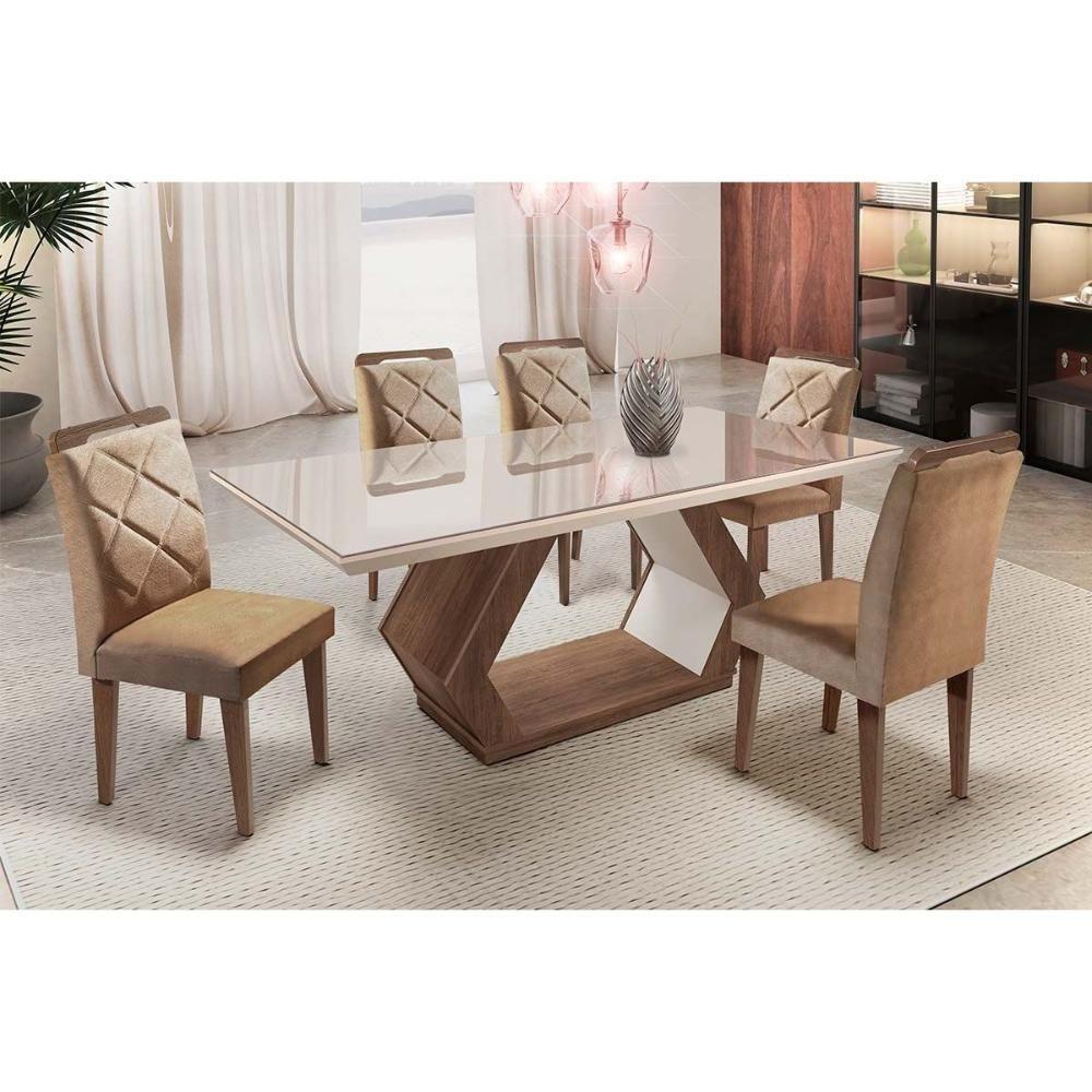 Kit 2 Cadeiras Sala Jantar Melissa Madeira 2 Un Capuccino/Veludo Pérola - Rufato