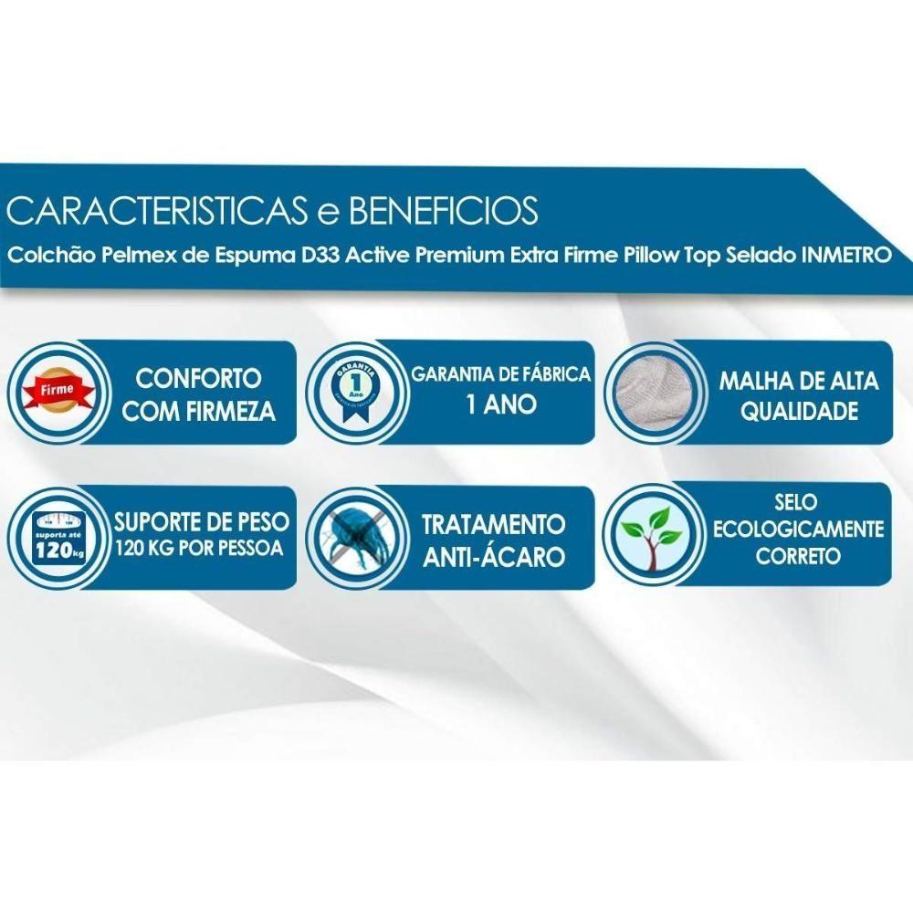 Colchão Solteiro Espuma D33 ProDormir Active Premium Extra Firme Pillow Top (88x188x24) - Probel