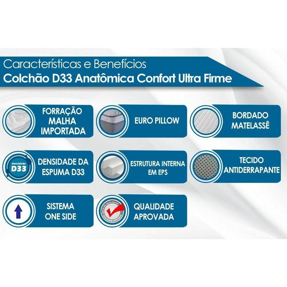Colchão Solteiro Anatômico D33 - Conforto Ultra Firme Euro Pillow (78x188x17) - Paropas