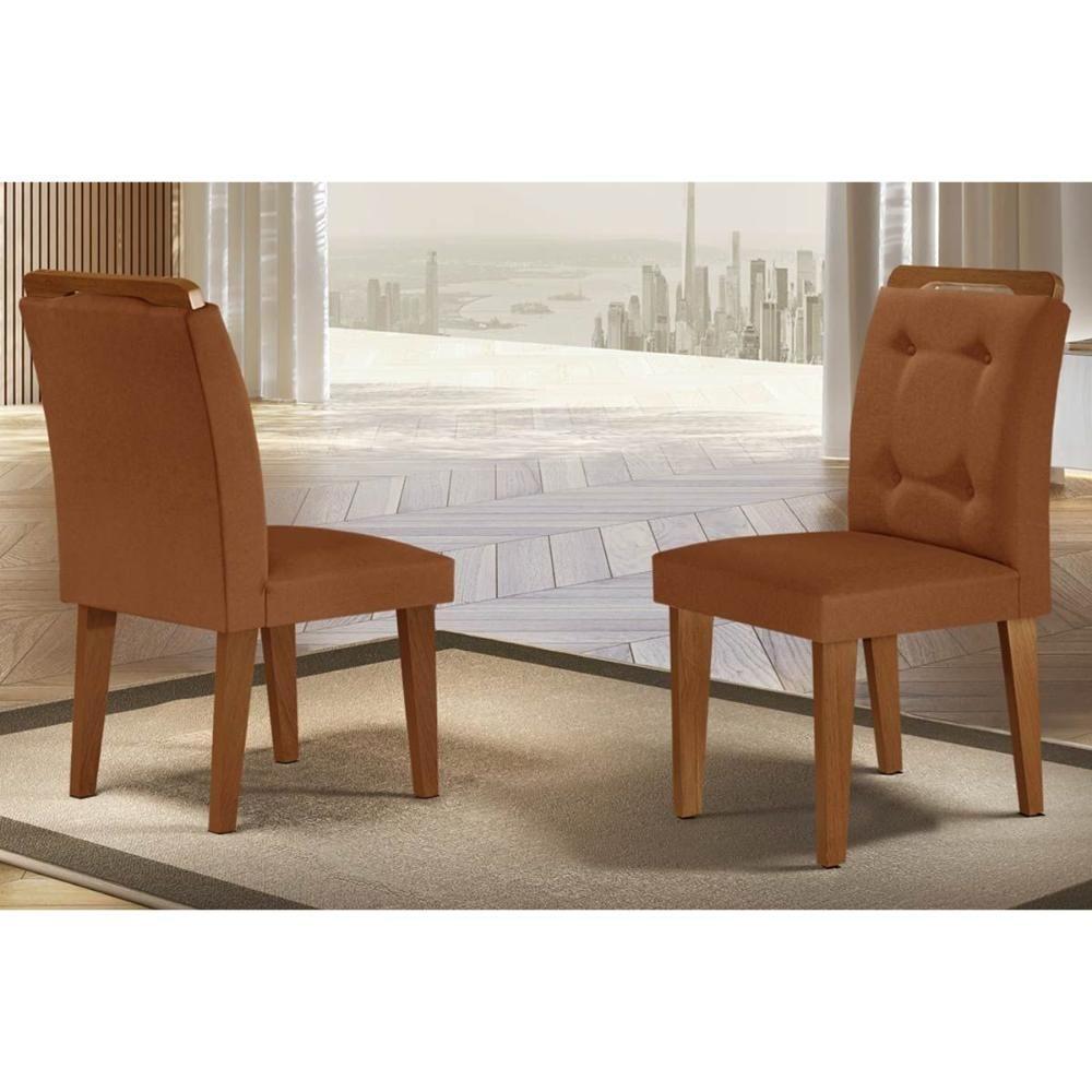 Kit 2 Cadeiras De Cozinha Imperatriz Madeira Capuccino-linho Bege Turim - Rufato