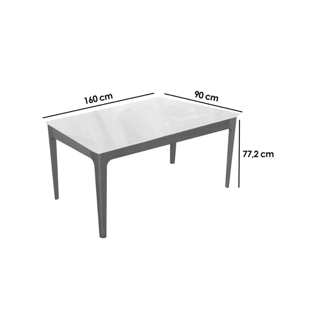 Sala de Jantar Completa Mira Tampo Madeirado c/ Vidro 90x160cm e 6 Cadeiras Alice Carvalho/Off White/Vidro Off White - Linho Beg - Kappesberg