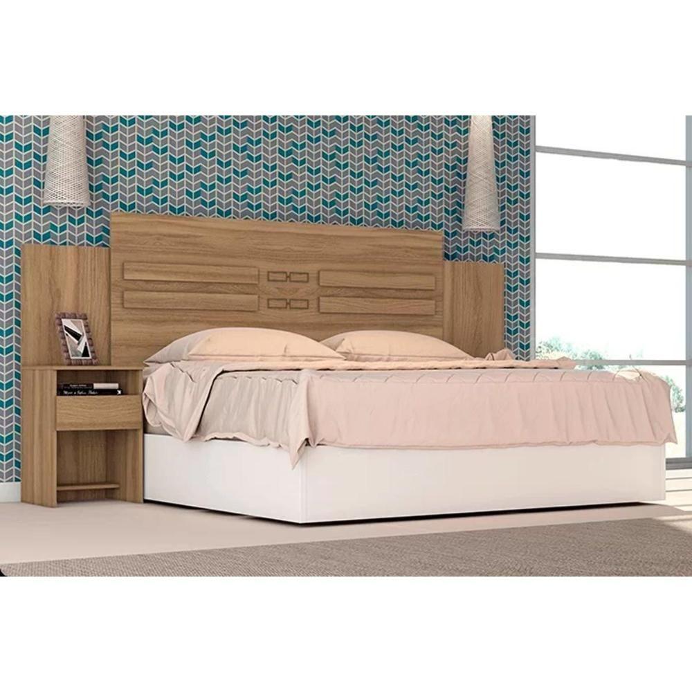 Painel Cama Box Madeirado Casal Triunfo Com 2 Mesas E 2 Gavetas Amêndola Touch Demóbile
