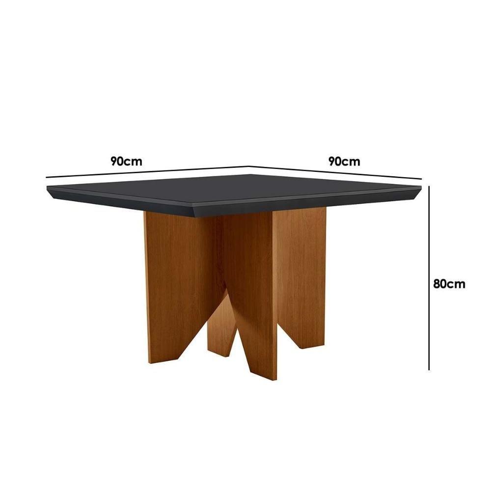 Mesa Para Cozinha Nevada Com Tampo 90x90cm Madeirado Vidro Canto Curvo Imbuia Off White Rufato