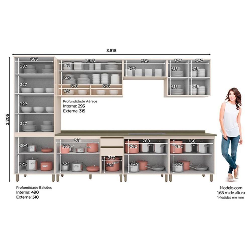 Cozinha Modulada Connect 10 Peças 33 Aéreos + 3 Balcões + 1 Paneleiro+3complementos C6p10 Duna Cristal2 Aéreos + 1 Balcão + 1 Complemento