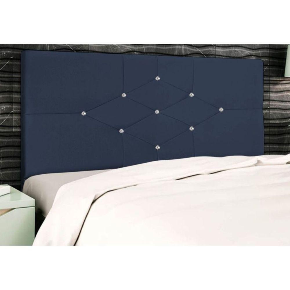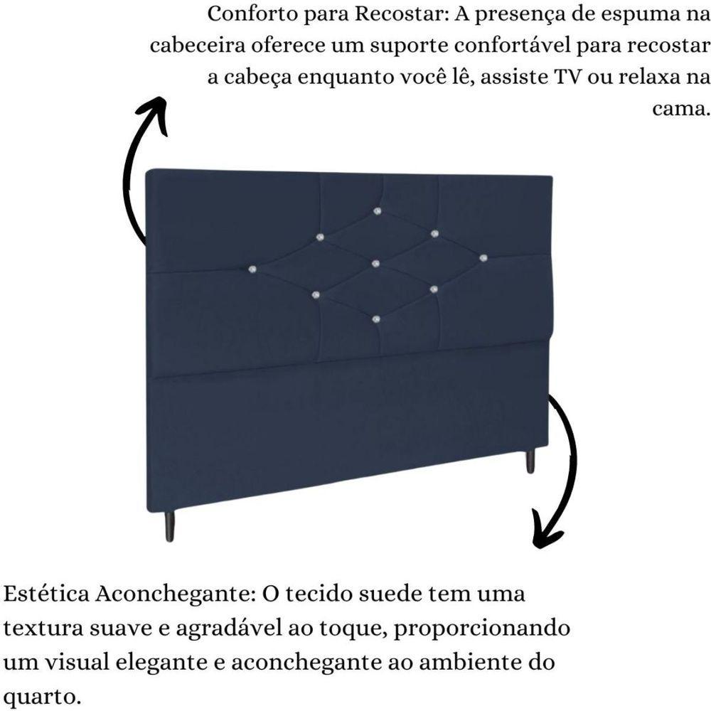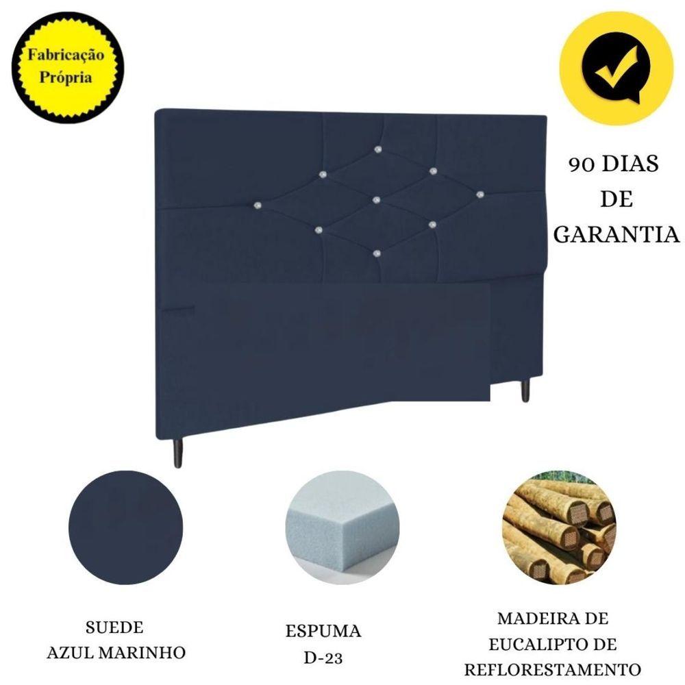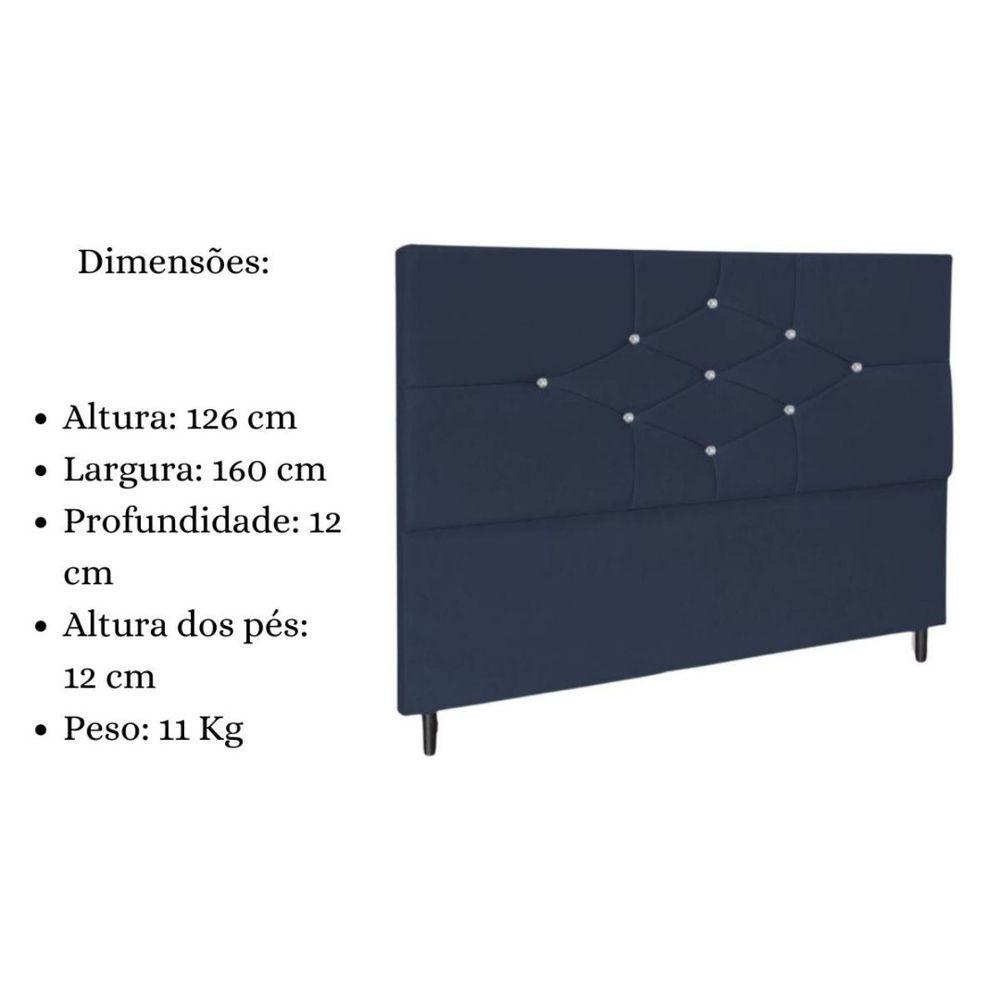 Cabeceira Queen 160 Cm Camboriú Suede Azul Marinho E Frame.