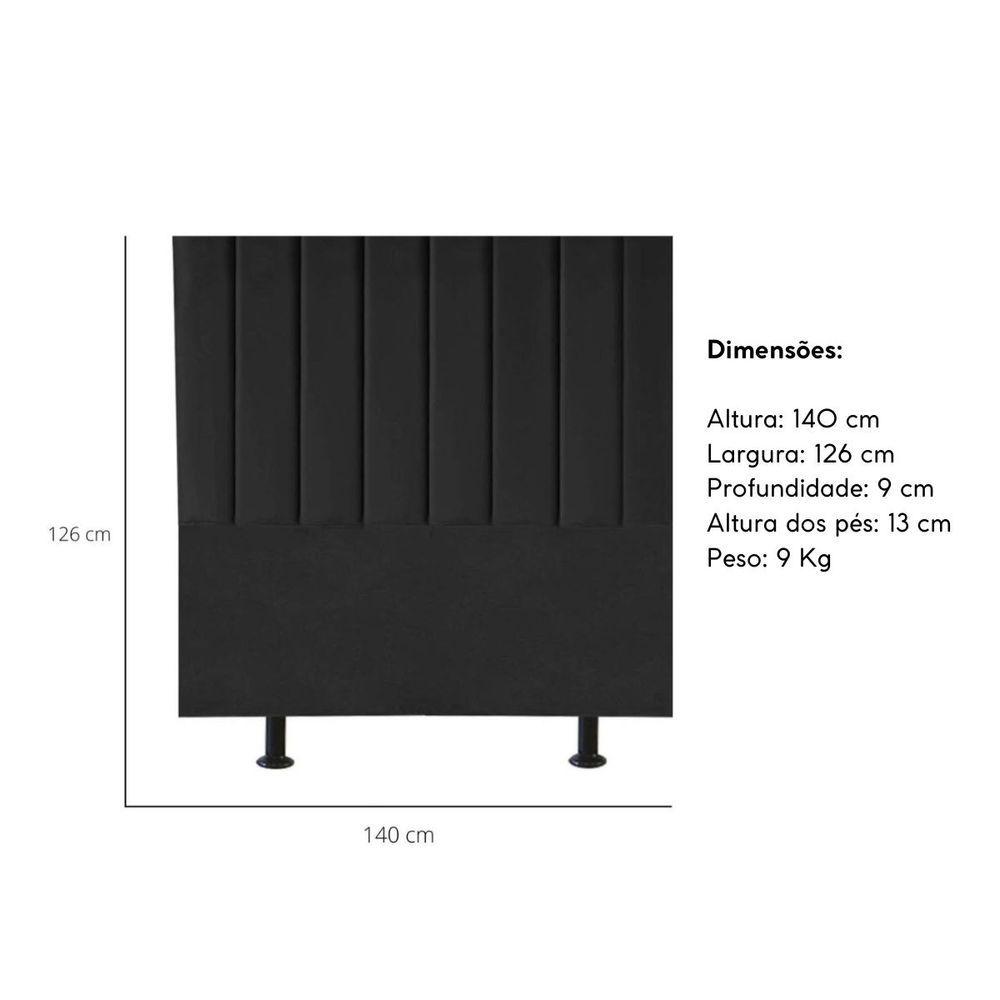 Cabeceira Estofada Cama Box Casal 140 Cm Sophia Carla Veludo preto