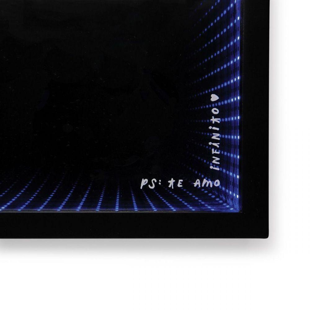 Espelho Com Led Infinito Te AmoEspelho, espelho meu, existe alguma coisa tão fofa quanto recado no espelho do amor seu? Desconheço. E esse aqui é pra eternizar qualquer amor (inclusive o amor-próprio). Para ampliar o ambiente, iluminar e dar um toque todo especial, criamos o Espelho Com LED Infinito Ps Te Amo.Para ser usado tanto no dia a dia, na hora de se arrumar, quanto num momento mais íntimo que pede aquele efeito especial. Isso porque, ao ligar, um LED na cor azul aciona o efeito infinito do espelho, para eternizar momentos inesquecíveis e deixar sua casa ainda mais moderna.Além disso, tem um recadinho que diz Ps: eu te amo infinito, que dá aquele toque de amor no ar. Já imaginou aquela fotinho instagramável? Com moldura na cor preta, super versátil, ele pode ser usado na horizontal ou vertical, pois possui encaixes na parte traseira para as duas formas.E pensando na melhor usabilidade, ele funciona com 2 pilhas AA (não inclusas), ou seja: você pode colocar em qualquer cantinho sem precisar de uma tomada por perto. Incrível, né?Amor infinito por esse espelho incrível.Contém 1 unidade.Tamanho (AxLxP): 60x40x5 cm.Material: MDF, vidro e componentes eletrônicos.Informações técnicas:Utilizar 2 pilhas AA (não inclusas).Tensão 3V.Potência total: 10.08WNúmero de LEDs 112.Vida útil dos LEDs: 20.000 horas.Atenção! Não é possível trocar as lâmpadas de LED.O espelho pode ser utilizado em local plano ou pendurado na parede, na direção vertical ou horizontal. Manuseie com cuidado.Referência - PI4749Função - ESPELHOSLargura (cm) - 40 CMAltura (cm) - 60 CMProfundidade - 5 CMExclusivo - IMAGINARIUM