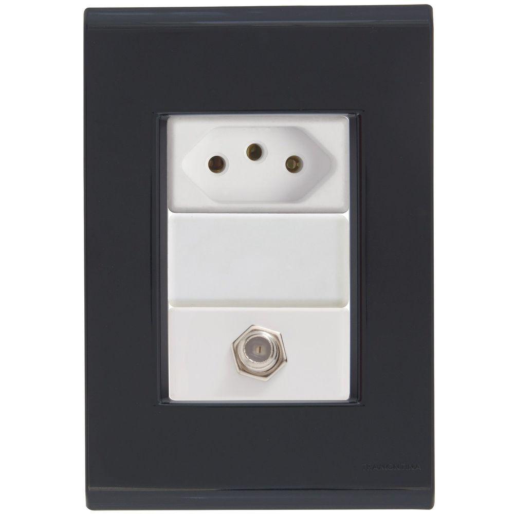 Cj Tomadas 10a E Tv Sat Coaxial Liz Grafite Tramontina Completo Pronto Tramontina