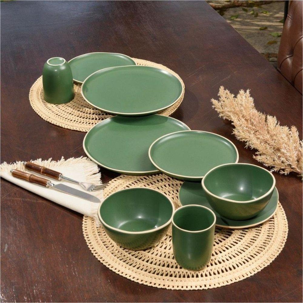 Jogo Copa E Cia 16 Peças Vivant Em Cerâmica Verde