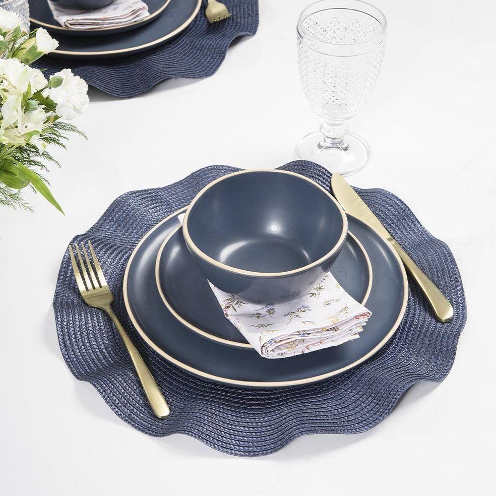 Jogo Copa E Cia 16 Peças Vivant Em Cerâmica Azul