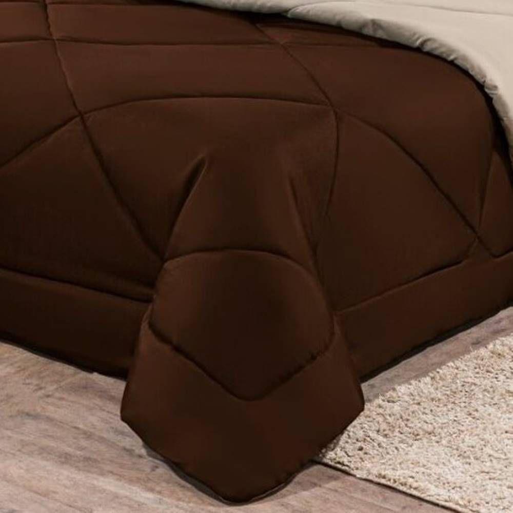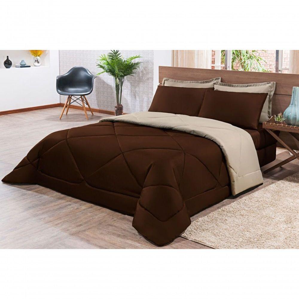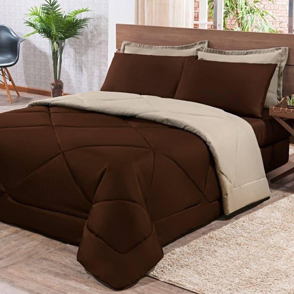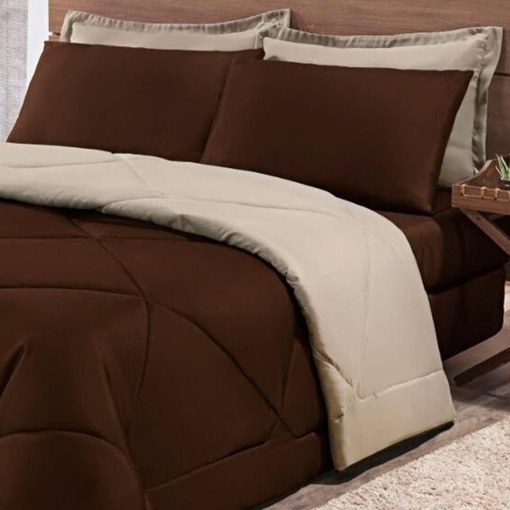 Kit Edredom + Jogo De Lençol Aconchego Look House Casal Padrão 6 Peças 80% Algodão , 20% Poliéster- Marrom E Caqui