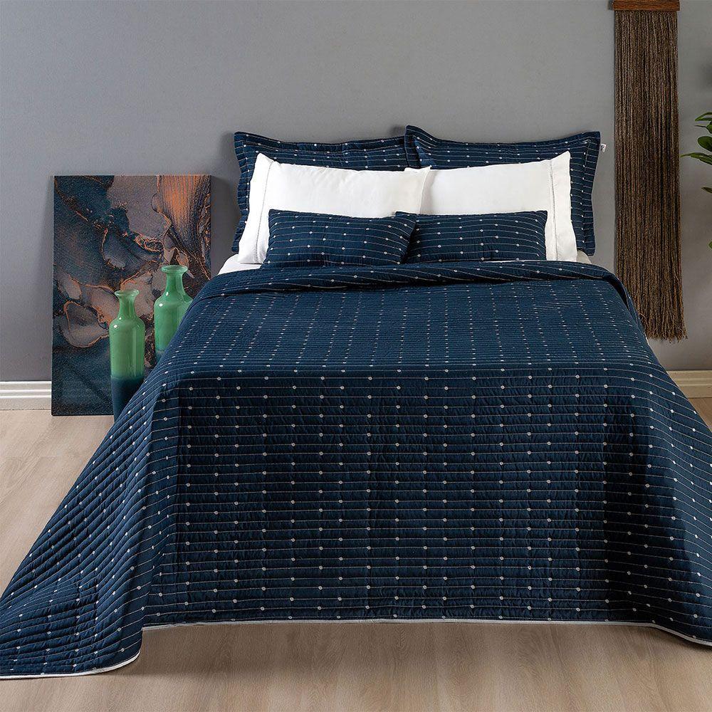 Kit Cobre Leito King + Almofada 5 Peças Bordado Urbany Hipercal 400 Fios 100% Poliéster - Azul Marinho