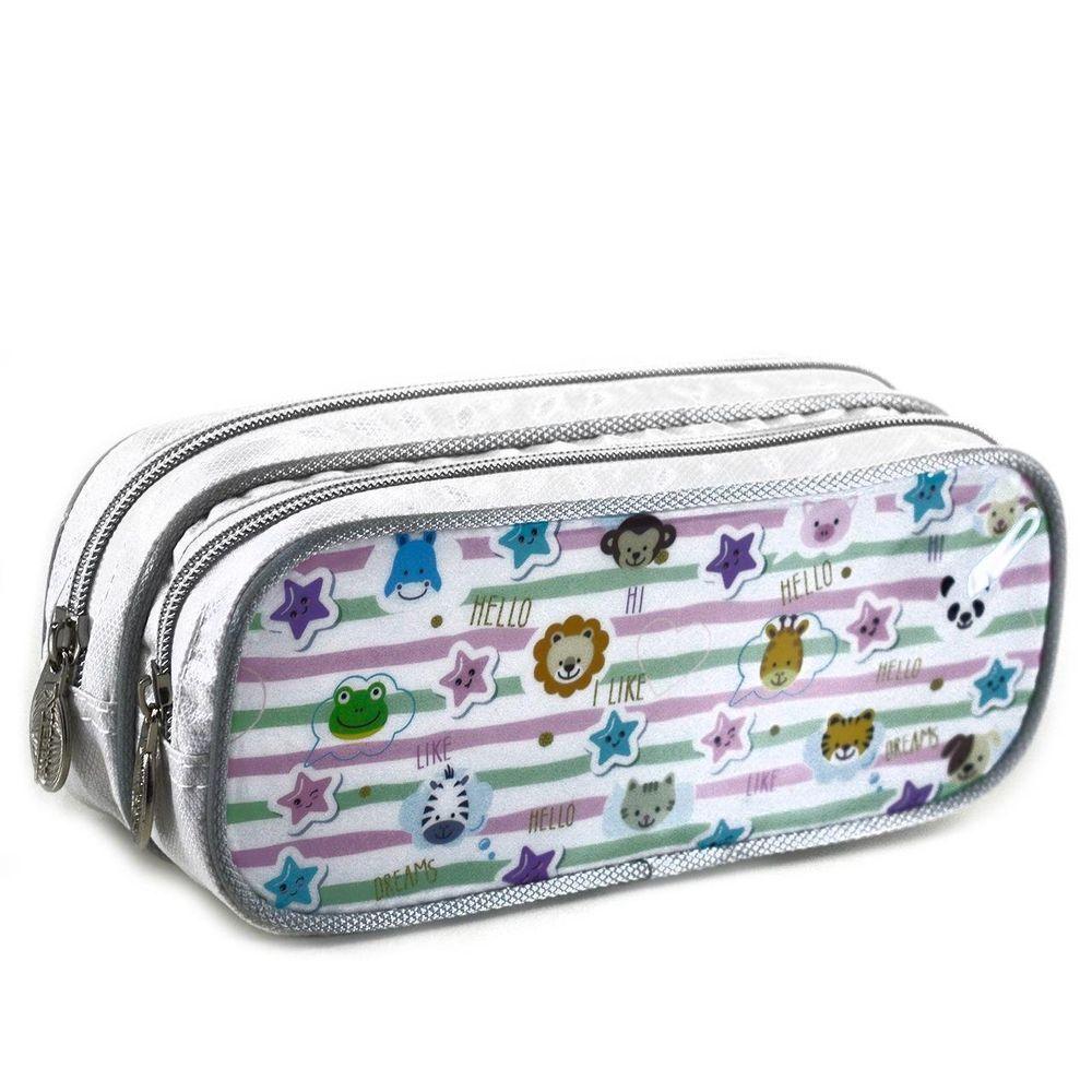Estojo Escolar Duplo 22 Cm Personagens Diversos - Tudo Em Caixa