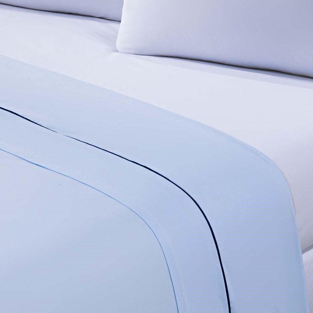 Jogo De Cama Lençol 100% Algodão Percal 150 Fios Casal Gran Moratta 4 Peças - Branco E Azul.