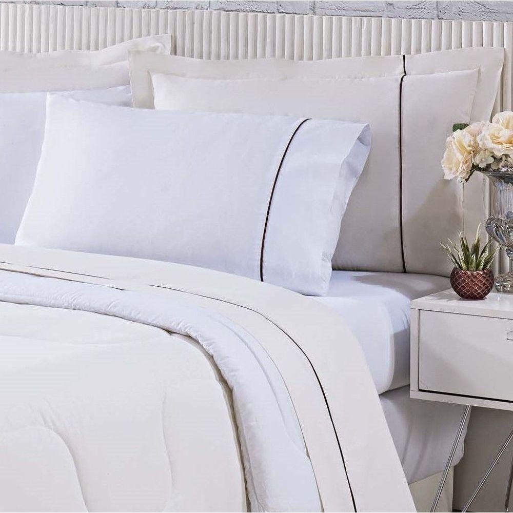 Kit Edredom 100% Algodão Percal 150 Fios Dupla Face King + Jogo De Cama Gran Moratta 7 Peças - Branco/ PalhaO Edredom Gran Moratta é confeccionado com tecido Percal 100% Algodão, é dupla face, ou seja, pode ser dos dois lados, sendo um com detalhe em Vivo.O jogo de cama possui tecido Percal 100% Algodão, acompanha lençol de baixo, lençol de cima e fronhas.A combinação perfeita para suas noites de sono!Produto composto por:01 Edredom 2,40m x 2,90m02 Porta Travesseiro 70cm x 50cm01 Lençol de Cima 2,40m x 2,90m01 Lençol de Baixo para Colchão 1,93m x 2,03m x 0,40m02 Fronhas 70cm x 50cmComposição:Percal 150 Fios 100% AlgodãoEnchimento 100% Poliéster (120 Gramas)