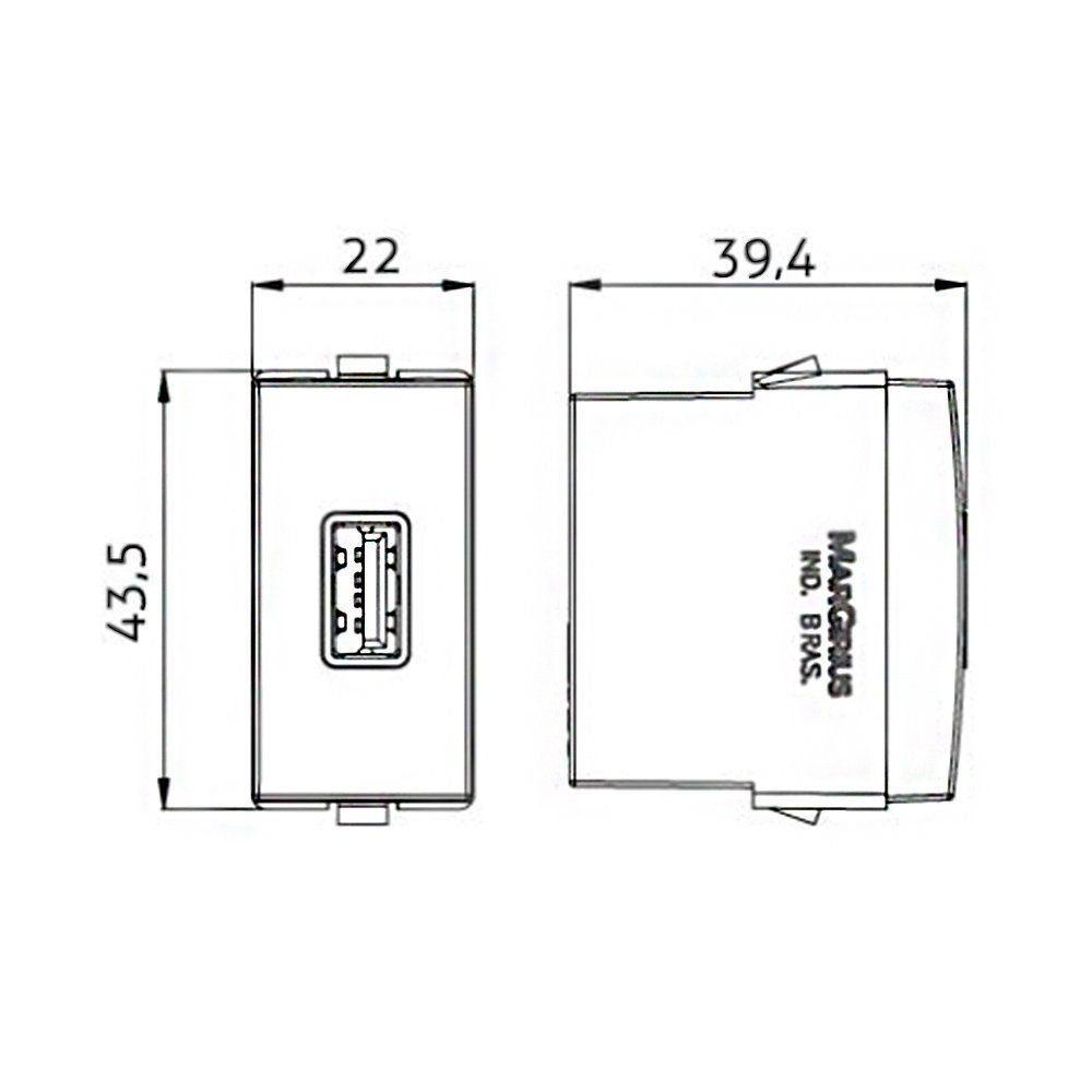 Módulo Tomada Carregador Usb-a Margirius Sleek Colors 2a 10W ArgilaMódulo Tomada Carregador USB-A MarGirius Sleek Colors 2A 10W ArgilaCaracterísticas Gerais do Produto: Cor: Argila Material: ABS com aditivo contra raio-uv Acabamento: Semibrilhante Acompanha Placa: Não Acompanha Suporte: Não Tipo: Módulo Tomada USB Tensão de Saída: 5V Potência: 10W Corrente Elétrica do USB: 2A Dimensões AxLxP (mm): 43,5x22x39,4 Linha: Sleek Colors Referência: PA022294 Acompanha o produto: - 1 Módulo Tomada Carregador USB-A Garantia: - 5 anos junto ao fornecedor