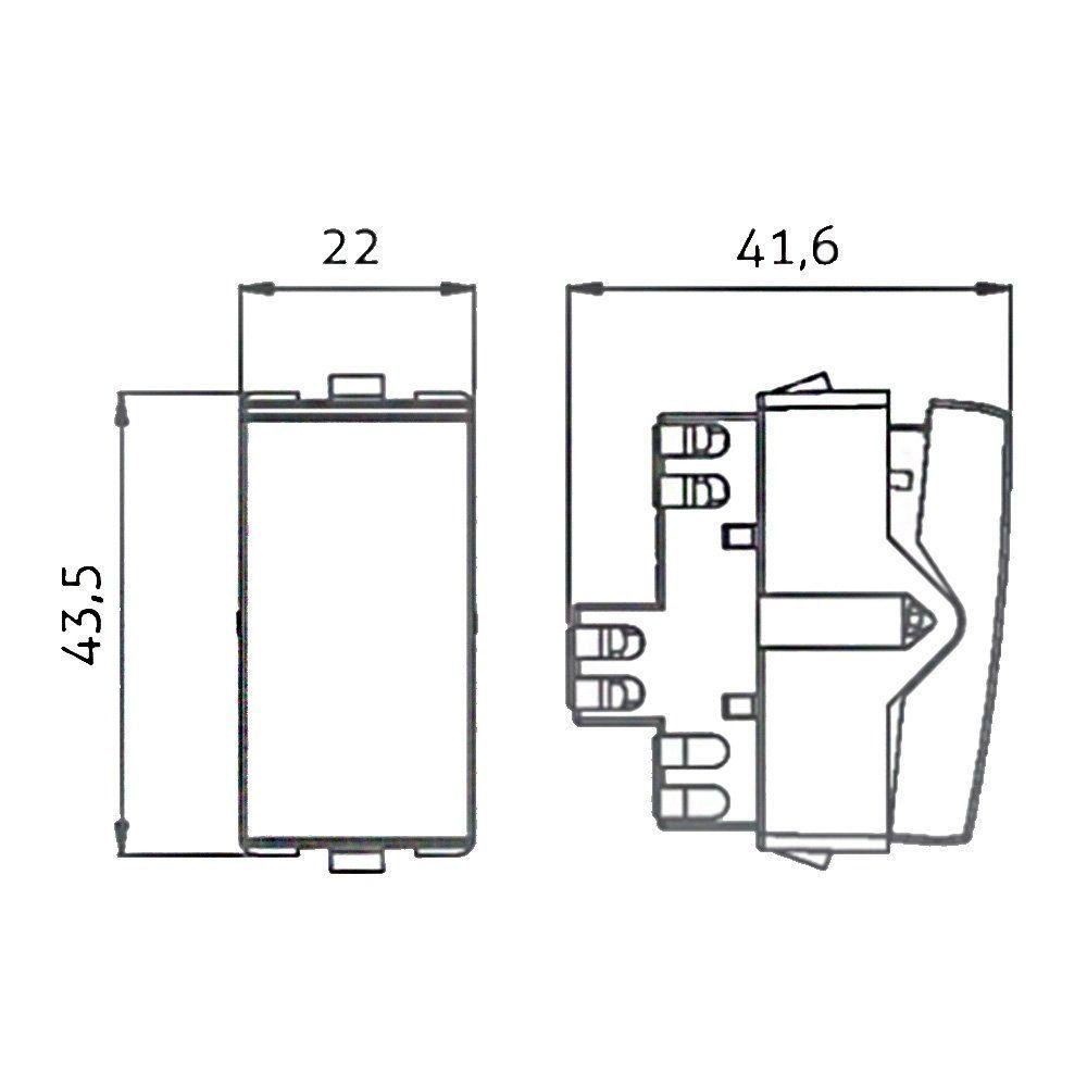 Módulo Interruptor Intermediário Margirius Sleek 10A BrancoMódulo Interruptor Intermediário MarGirius Sleek 10A BrancoCaracterísticas Gerais do Produto: Cor: Branco Material: ABS com aditivo contra raio-uv Voltagem: Bivolt Acabamento: Alto Brilho Acompanha Placa: Não Acompanha Suporte: Não Tipo: Módulo Interruptor Intermediário Corrente Interruptor: 10A Dimensões AxLxP (mm): 43,5x22x41,6 Linha: Sleek Referência: PA016057 Acompanha o produto: - 1 Módulo Interruptor Intermediário Garantia: - 5 anos junto ao fornecedor
