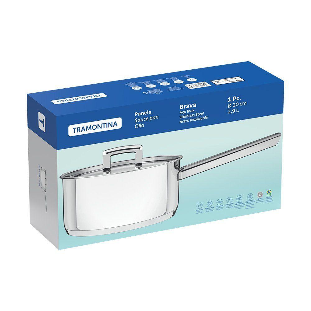 Panela Fundo Triplo Tramontina Brava 62401200 InoxPanela Fundo Triplo Tramontina Brava 62401200 Inox -Características Gerais do Produto:Dimensões AxLxP (mm): 133x388x221Material: Aço InoxTecnologia da Panela: Fundo TriploLinha: BravaTampa: Sim, com saída de vaporCapacidade da Panela: 2,9LPode ir ao forno?: Sim, para gratinar ou finalizar pratos na temperatura máxima de 260°C.Pode ir à Máquina de Lavar Louças?: SimTipo de Fogão: Gás, elétrico, vitrocerâmico e induçãoAcompanha o produto: - 1 Panela Ø 20cm Garantia: - 90 dias junto ao fabricante