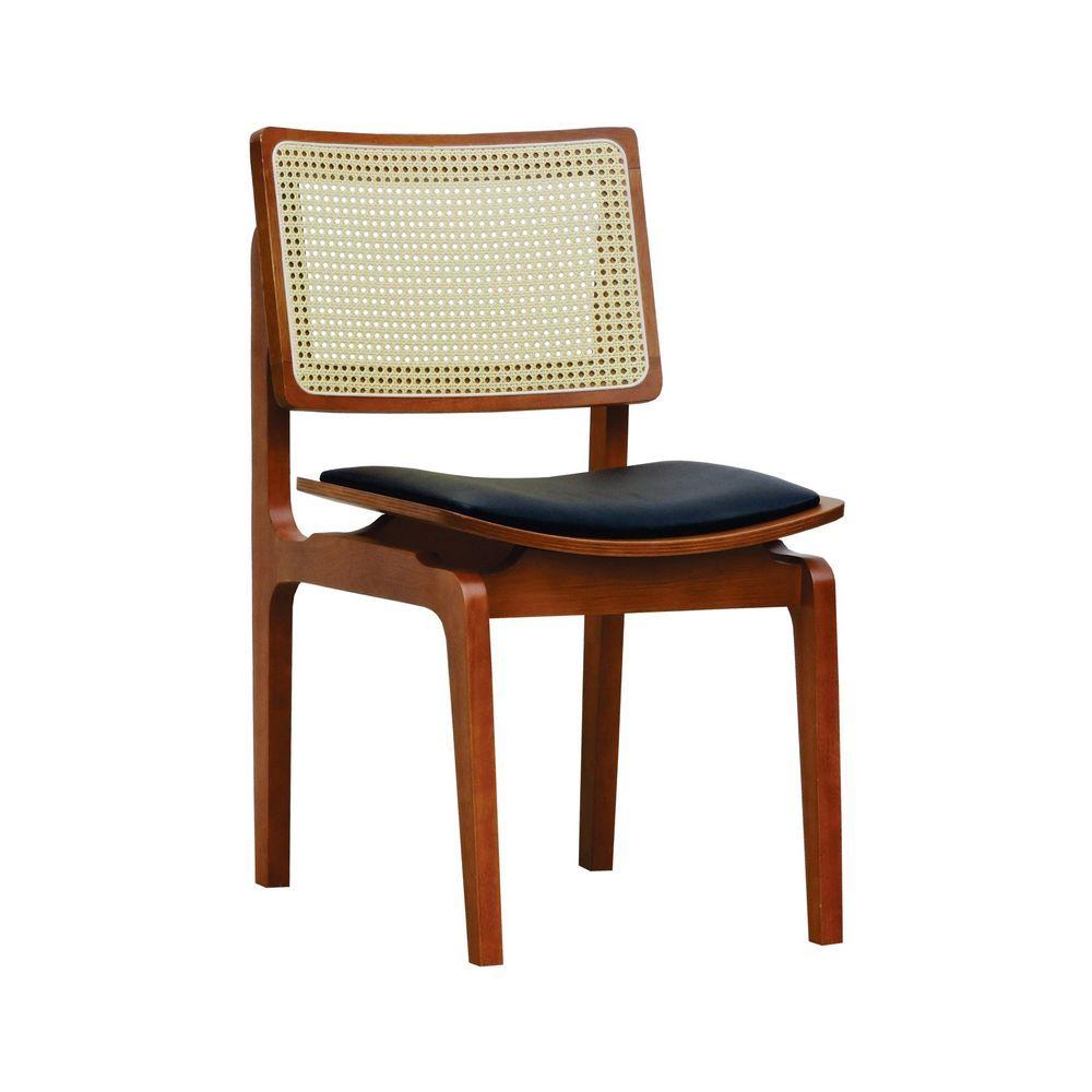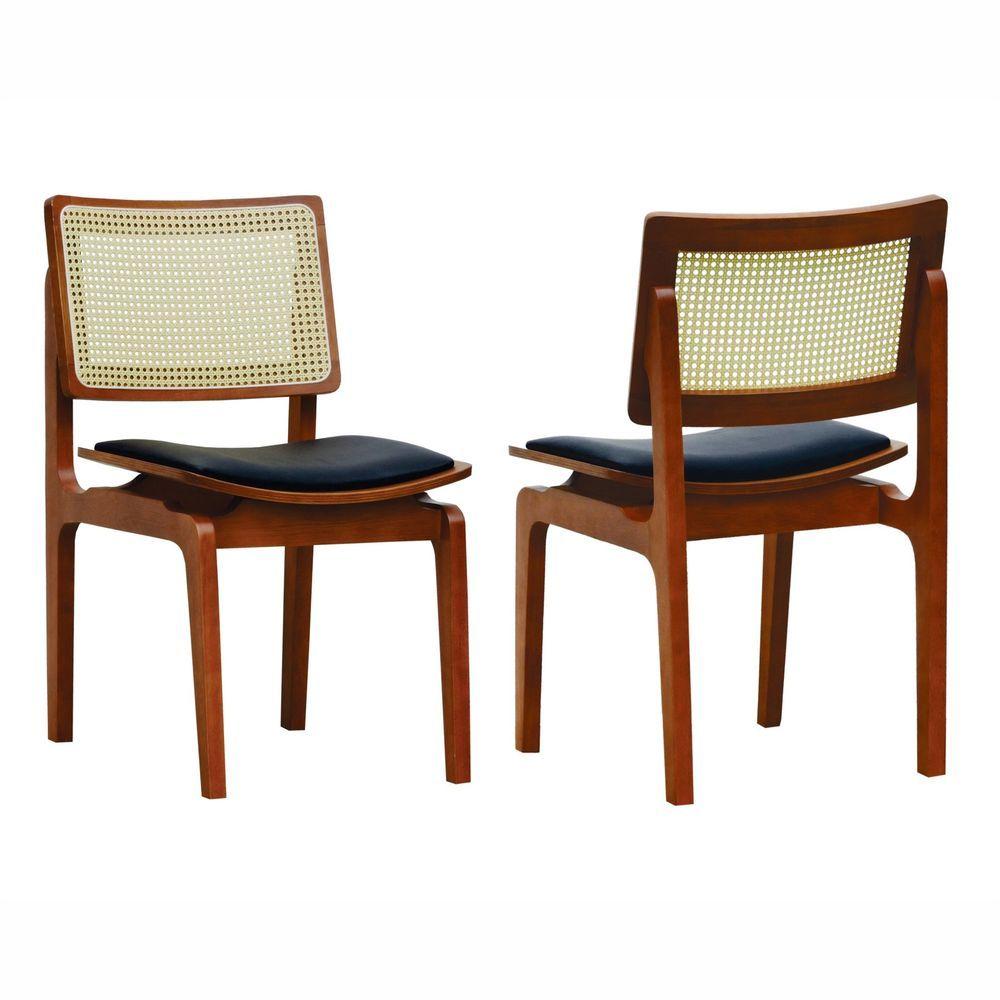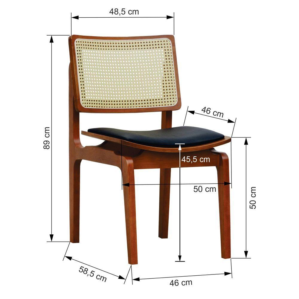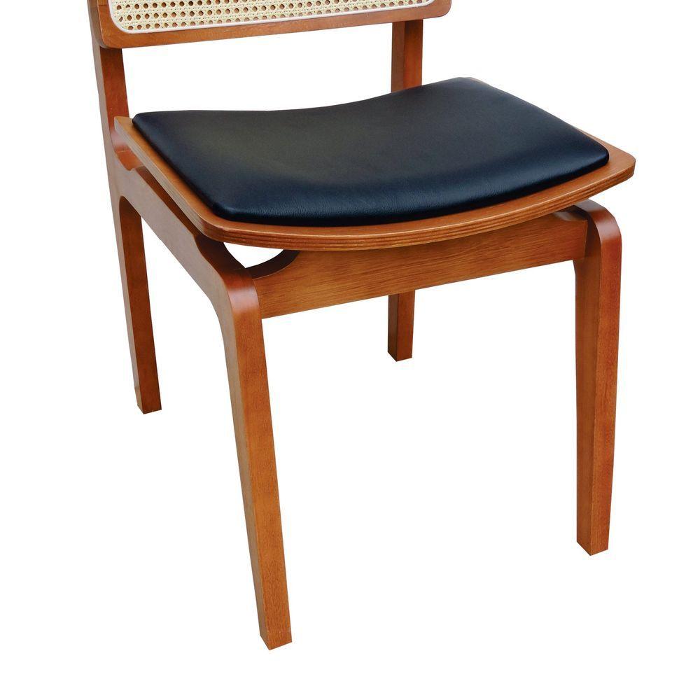 Kit 2 Cadeiras Gus Madeira Maciça Encosto Telinha Assento Anatômico - Amêndoa Estofado Corano Preto