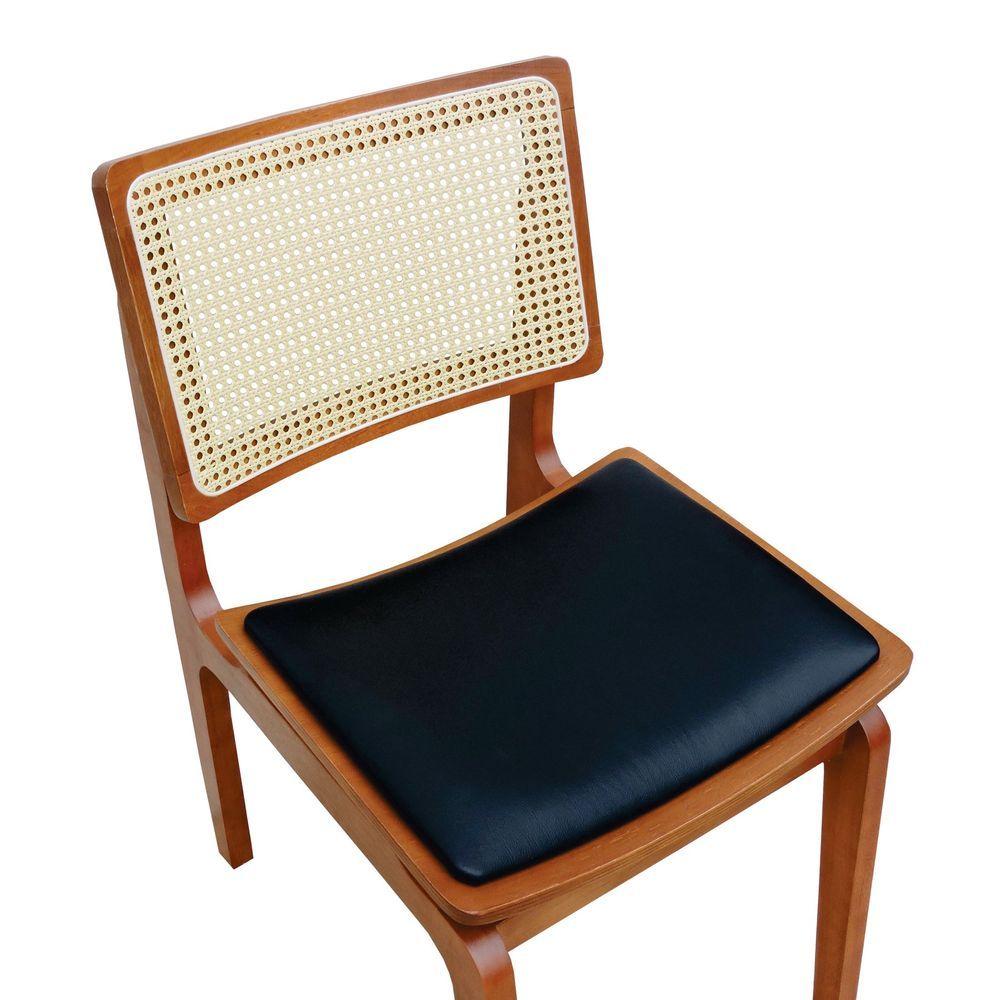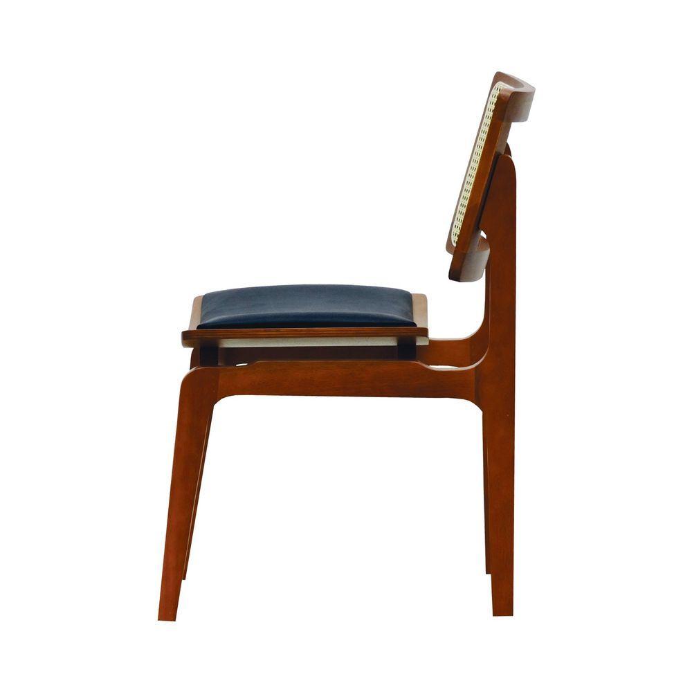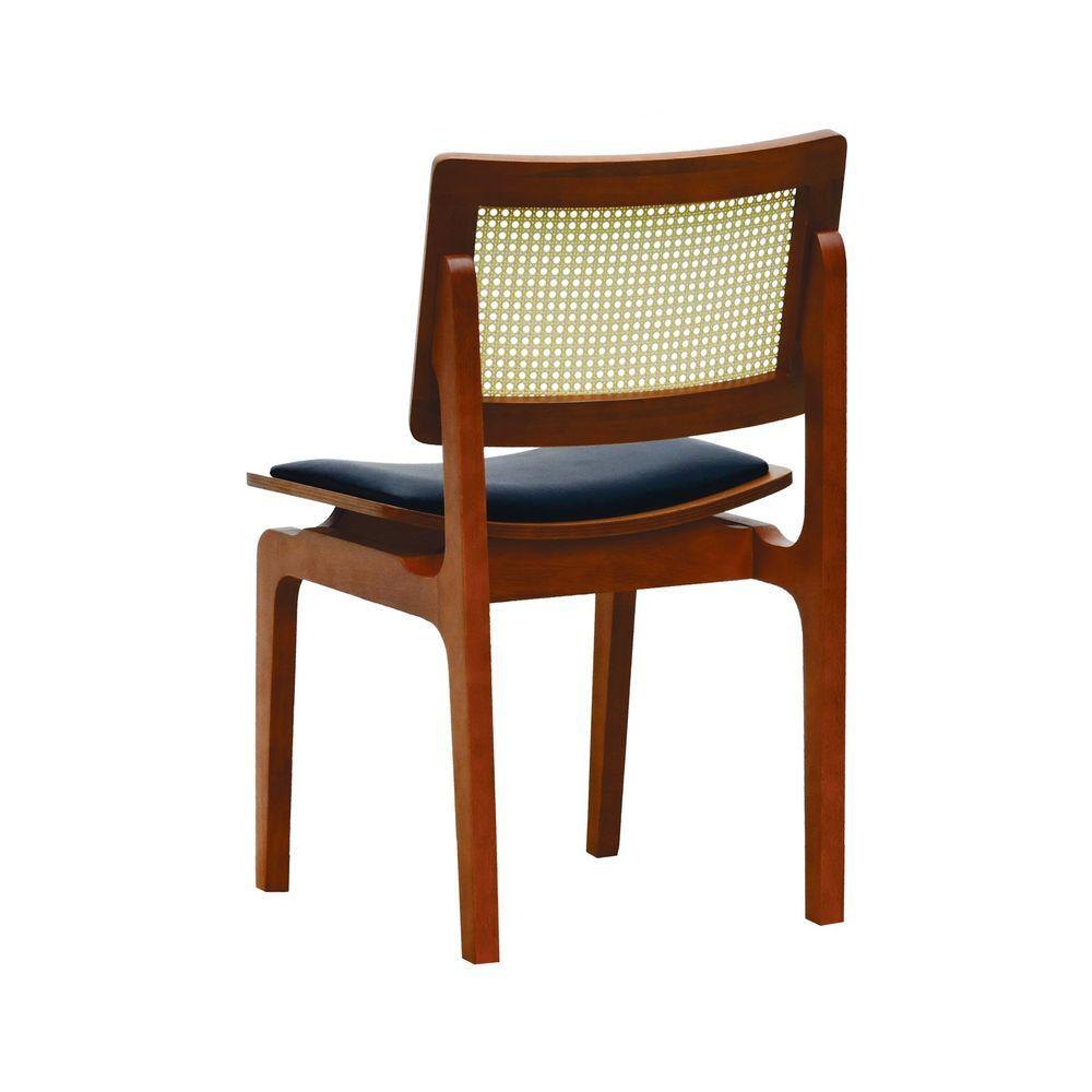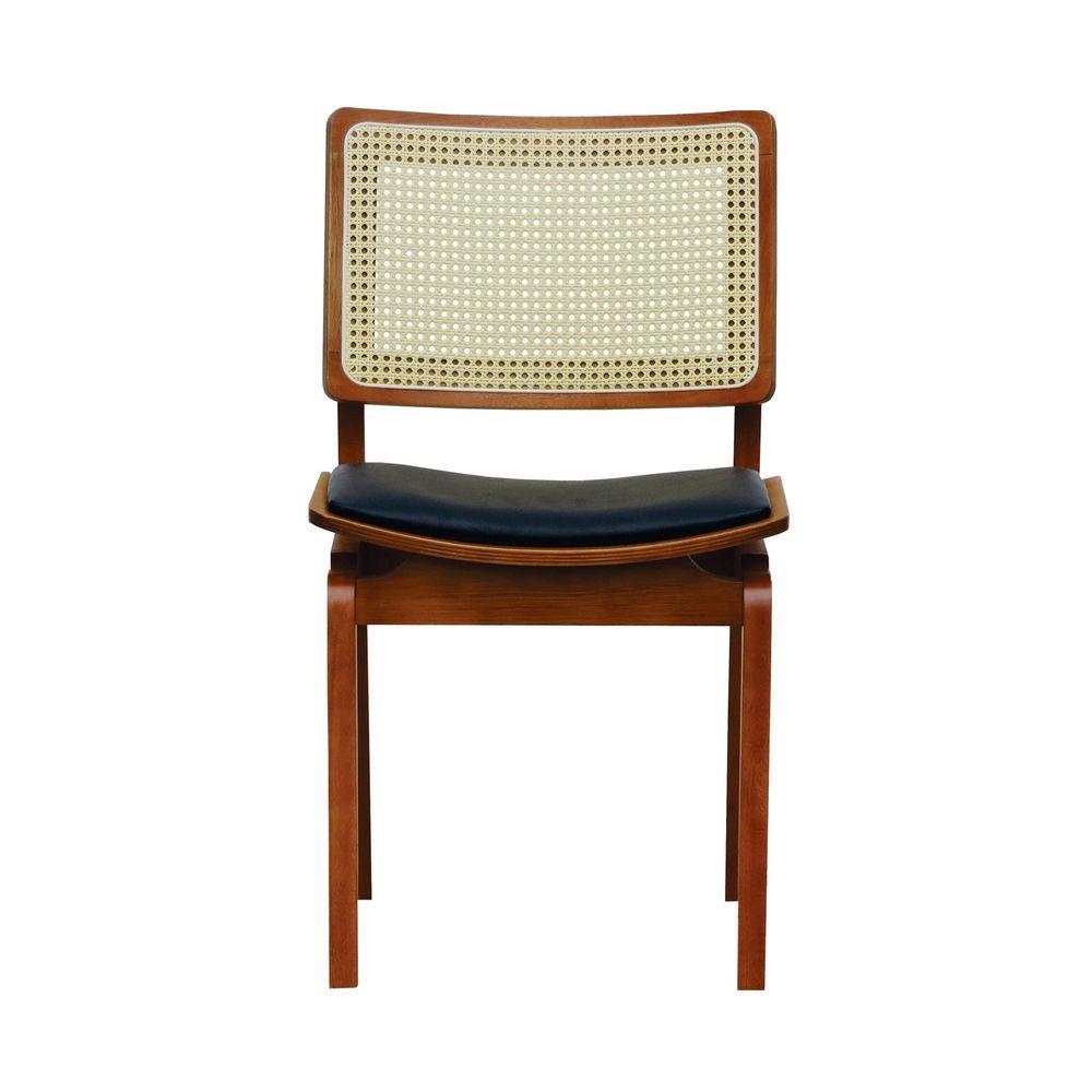 Kit 2 Cadeiras Gus Madeira Maciça Encosto Telinha Assento Anatômico - Amêndoa Estofado Corano Preto