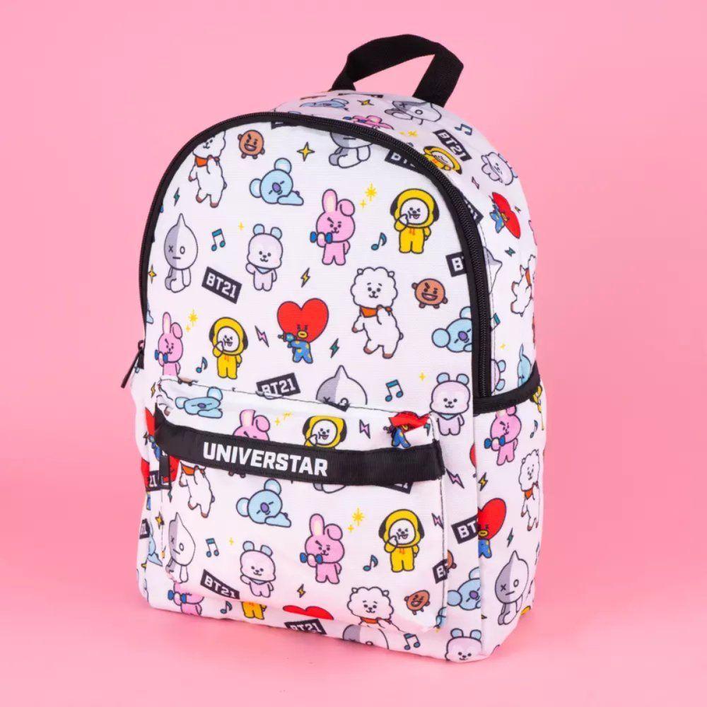 Mochila De Costa Escolar Personagens Bt21 - Branca