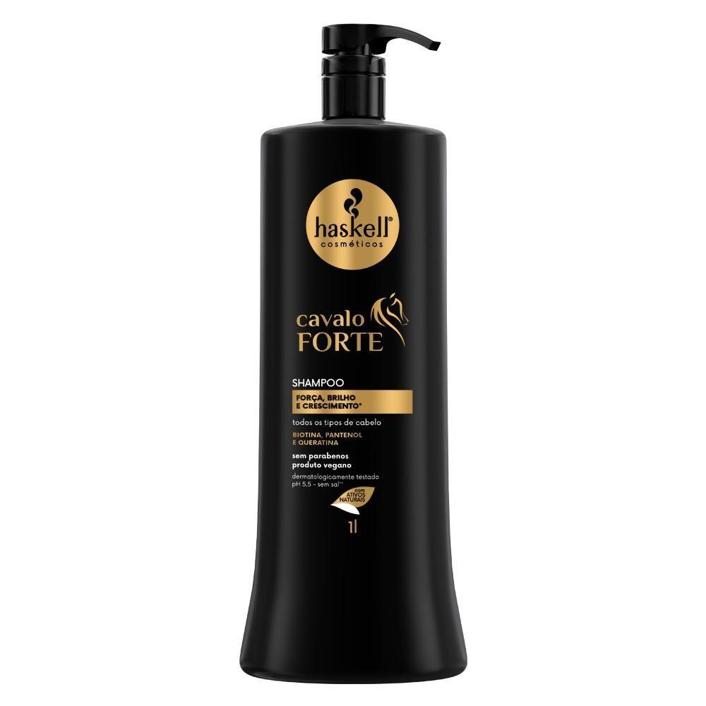 Shampoo Para Crescimento E Reconstrução Haskell Cavalo Forte 1000ml O Shampoo para Crescimento e Reconstrução Haskell Cavalo Forte é especialmente desenvolvido para limpar suavemente os cabelos, proporcionando um cuidado especial para o couro cabeludo. Sua concentrada com os ativos Biotina, Pantenol e Queratina promove um tratamento de alta performance, fortalecendo e restaurando profundamente os fios. Além disso, auxilia no crescimento dos cabelos, reconstrói a estrutura interna, proporciona brilho intenso e reduz o risco de quebra, impedindo a formação de pontas duplas. Indicação: Para todos os tipos de cabelo Direção olfativa: Floral verde Benefícios: Fortalece e restaura profundamente os fios. Auxilia no crescimento dos cabelos. Reconstrói a estrutura interna dos fios. Proporciona brilho intenso. Reduz o risco de quebra e impede a formação de pontas duplas. Especificações: pH Sem parabenos DÚVIDAS FREQUENTES: Qual a validade do produto? Haskell tem validade de 2 anos a partir da data de fabricação. Tem em estoque? Temos todos os nossos produtos disponíveis para . Produto? Adquirido diretamente do distribuidor autorizado Haskell. personalizado? Elaboração de kits sob medida. OBSERVAÇÕES SOBRE A COMPRA: Mimos e + mimos e com o pedido sempre tem um cupom! Sabia!? Compras efetuadas até as 14 hrs serão enviadas no mesmo dia. Compras efetuadas sexta-feira após as 14 hrs serão enviadas no dia útil seguinte. Todos os produtos são enviados com . Caso seu produto chegue não se preocupe, fale com a gente! NA