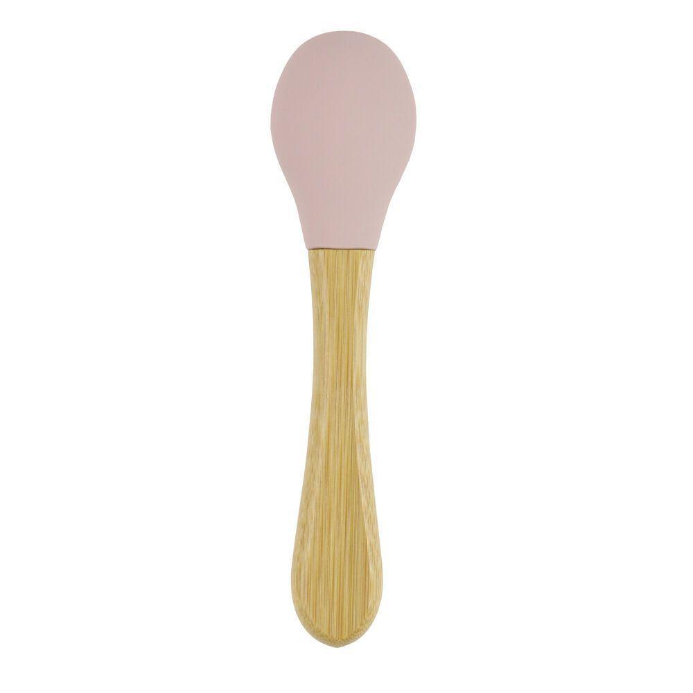 Colher Rosa De Bambu E Silicone Para Bebês - Segura E Sustentável!